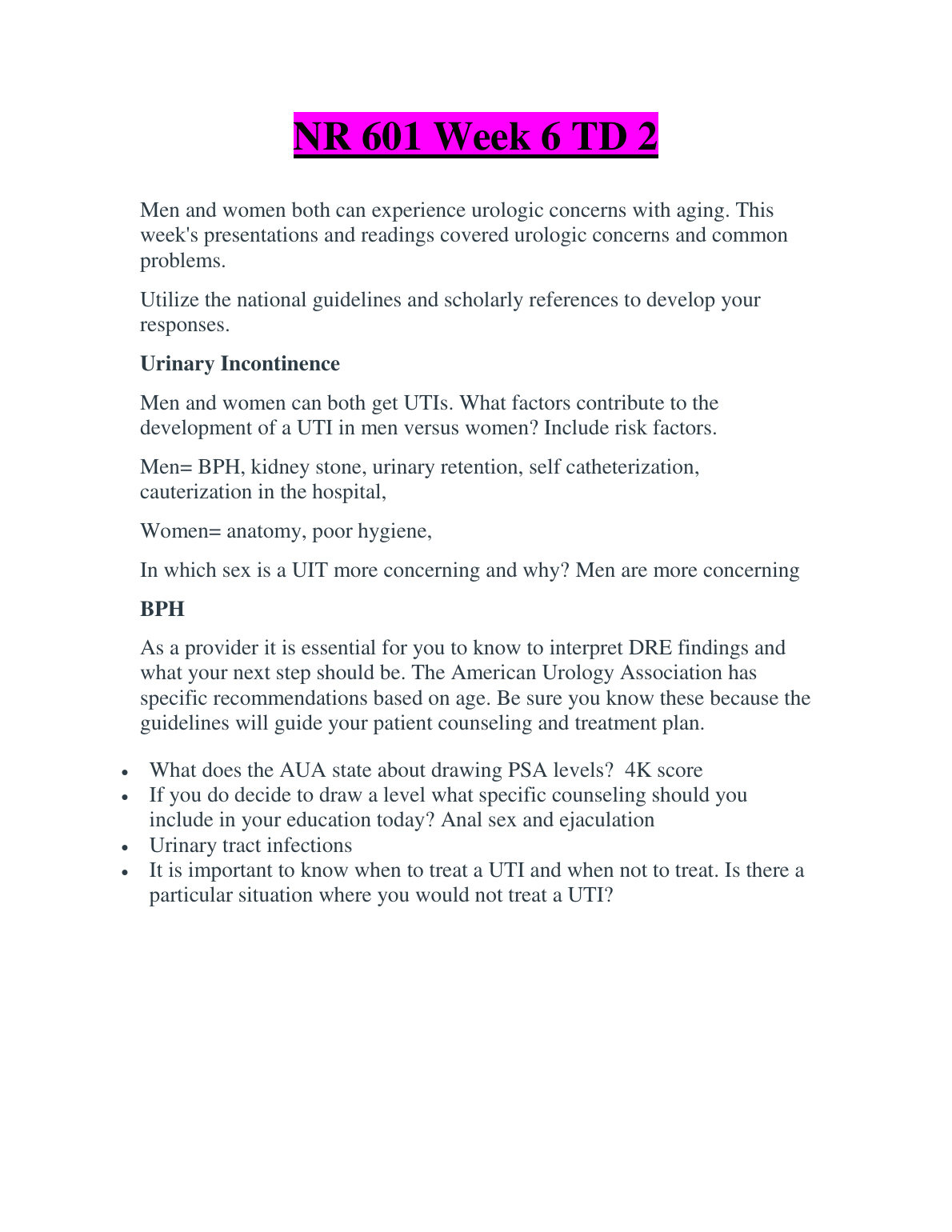 NR 601 Week 6 TD 2. MOST RECENT WITH 100% SOLUTIONSDOWNLOAD ON www.Hackedexams.com INSTANTLY.