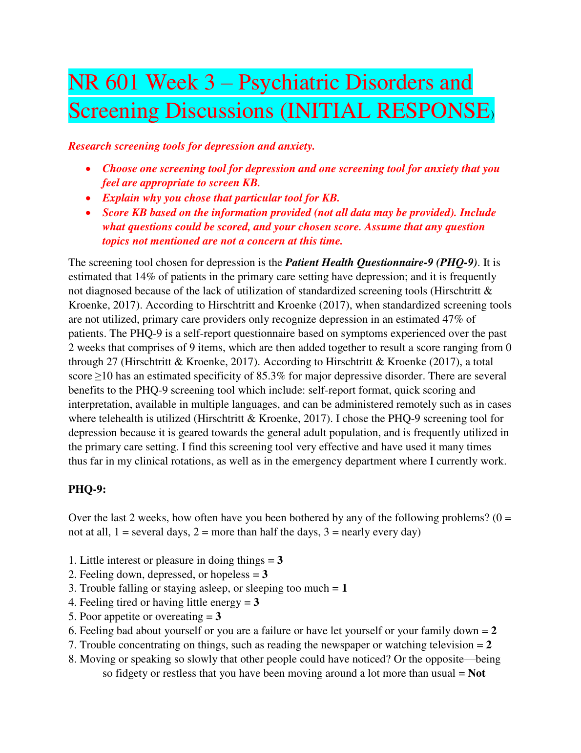 NR 601 Week 3 Psychiatric Disorders and Screening Discussions (INITIAL RESPONSE) 2023/2024. DOWNLOAD ON www.Hackedexams.com INSTANTLY.