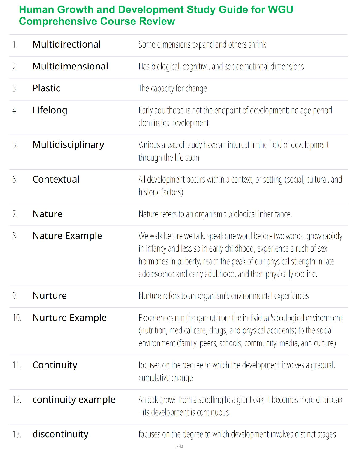 Unlock success in your WGU C105 course with our expertly crafted Human Growth and Development study guide, fully updated for the 2025/2026 academic term. This comprehensive review breaks down all critical concepts, from the core principles of lifelong, multidimensional, and contextual development to the classic debates of nature versus nurture. Each topic is explained clearly and concisely to build your confidence and ensure a deep understanding of the material. This is the ultimate resource to help you ace your comprehensive exam on the first attempt and progress smoothly through your degree program. Don't just study—study smart and avoid resits with this essential WGU C105 exam preparation guide.
