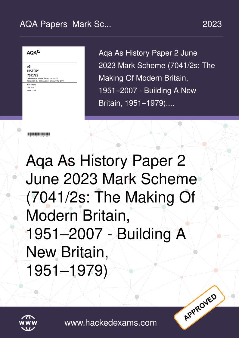 AQA AS HISTORY PAPER 2 2023 QUESTION PAPER AND MARK SCHEME BUNDLE (7041/2S: The Making of Modern Britain, 1951–2007 - Building a new Britain, 1951–1979). OFFICIAL AQA AS PAPERS. DOWNLOAD ON www.hackedexams.com INSTANTLY.