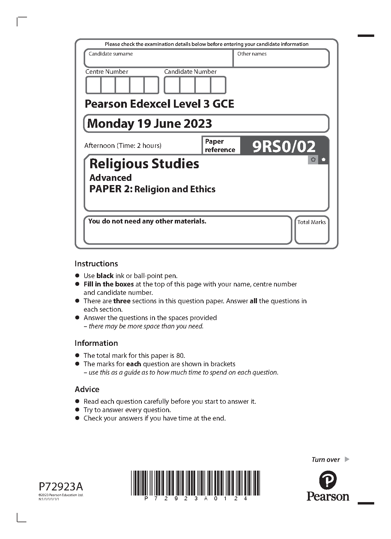 PEARSON EDEXCEL A LEVEL RELIGIOUS STUDIES PAPER 2 2023 (9RS0/02: Religion And Ethics). DOWNLOAD On www.Hackedexams.com Instantly.