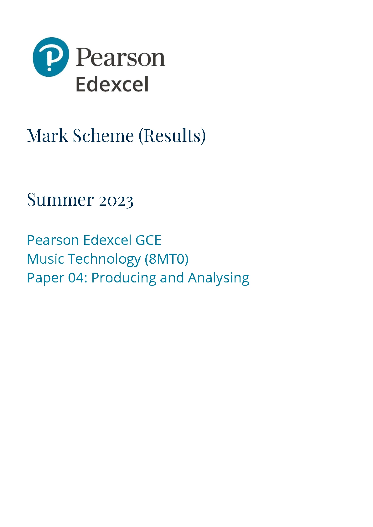 PEARSON EDEXCEL AS Music Technology PAPER 4 2023 MARK SCHEME (8MT0/04: Producing and Analysing)