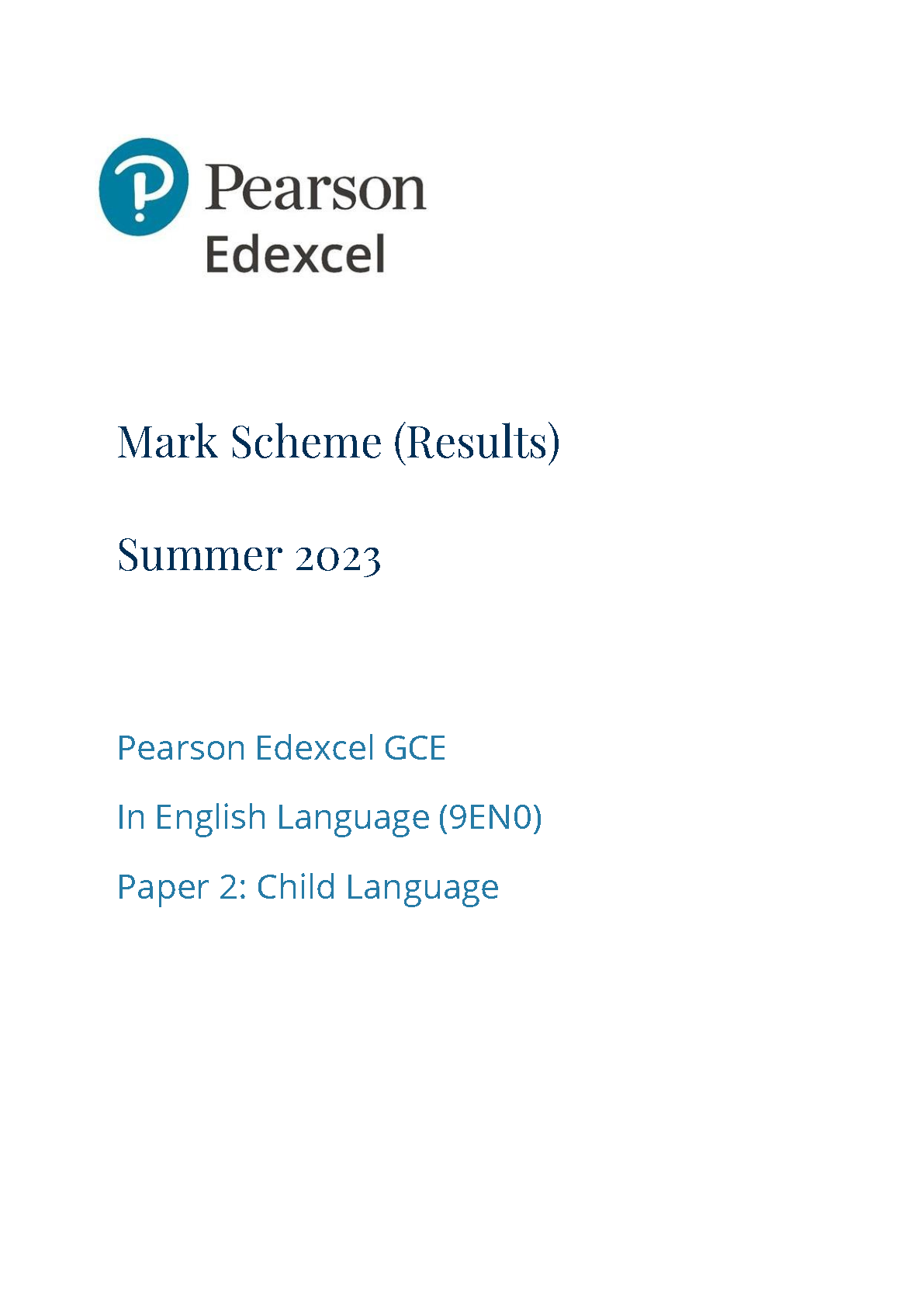 PEARSON EDEXCEL A LEVEL English Language PAPER 2 2023 MARK SCHEME (9EN0/02: Child Language). DOWNLOAD OFFICIAL AND VERIFIED EDEXCEL PEARSON A LEVEL English Language PAPER 2 2023 on www.hackedexams.com INSTANTLY.