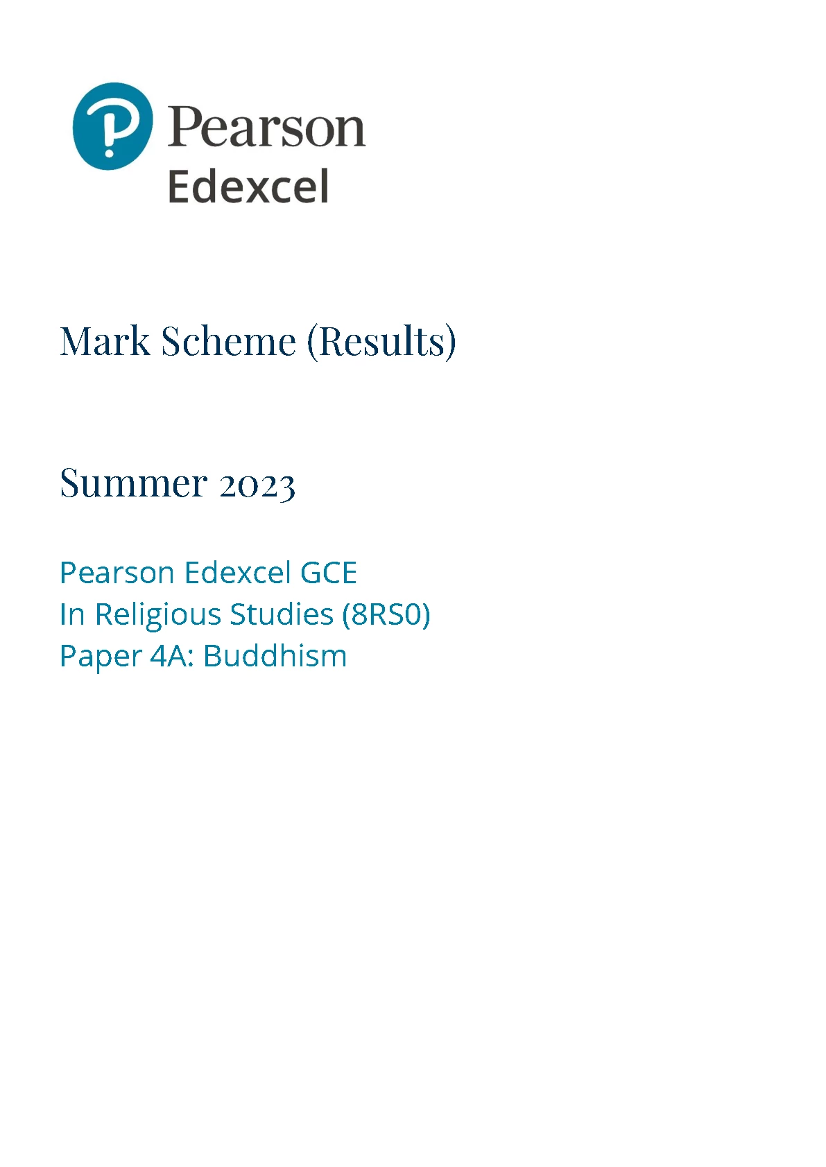 PEARSON EDEXCEL AS Religious Studies PAPER 4 2023 MARK SCHEME (8RS0/4A: Buddhism)
