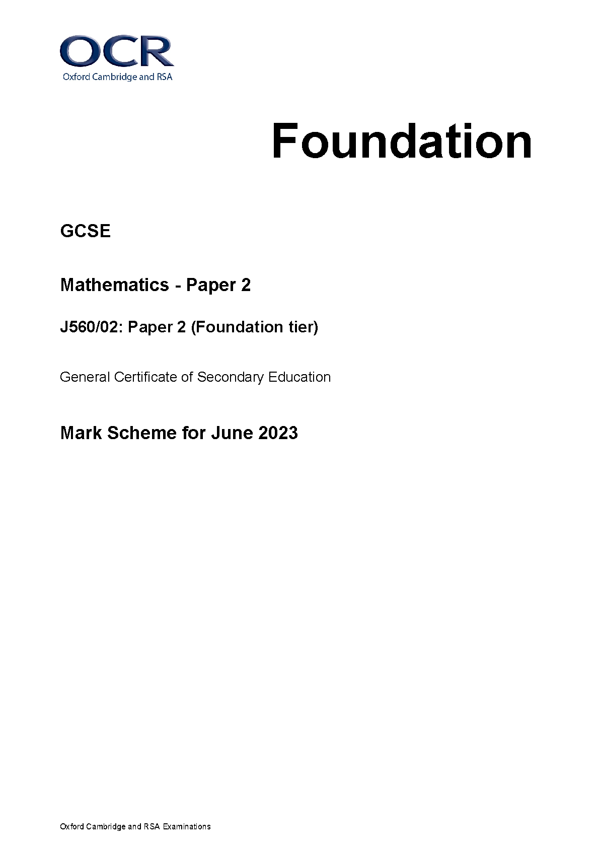 OCR GCSE MATHEMATICS PAPER 2 2023 MARK SCHEME (J560/02: Foundation Tier)