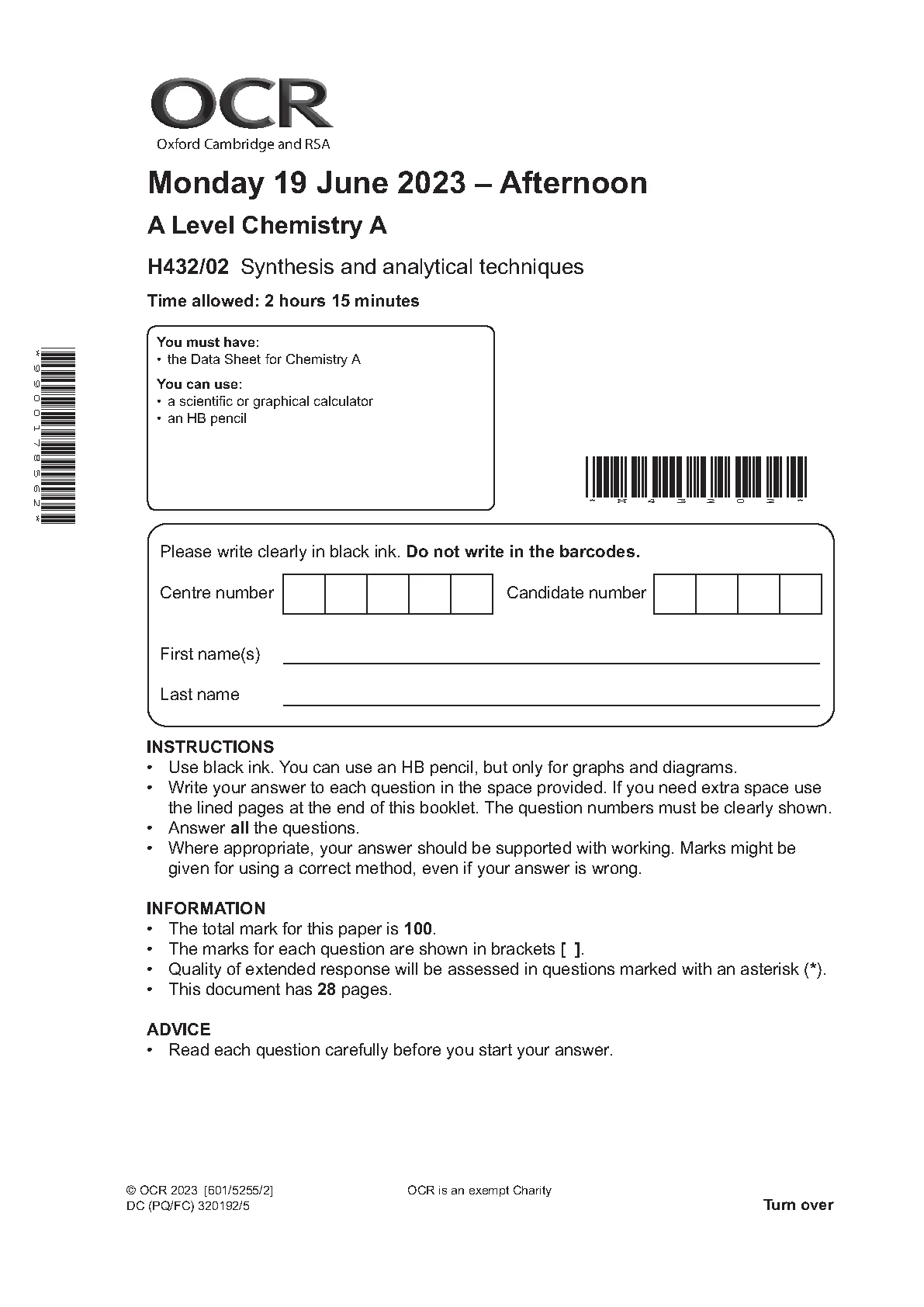 OCR A LEVEL Chemistry A PAPER 2 2023 (H432/02: Synthesis and analytical techniques). DOWNLOAD OFFICIAL AND VERIFIED OCR A LEVEL Chemistry A PAPER 2 2023 on Hackedexams.com INSTANTLY.