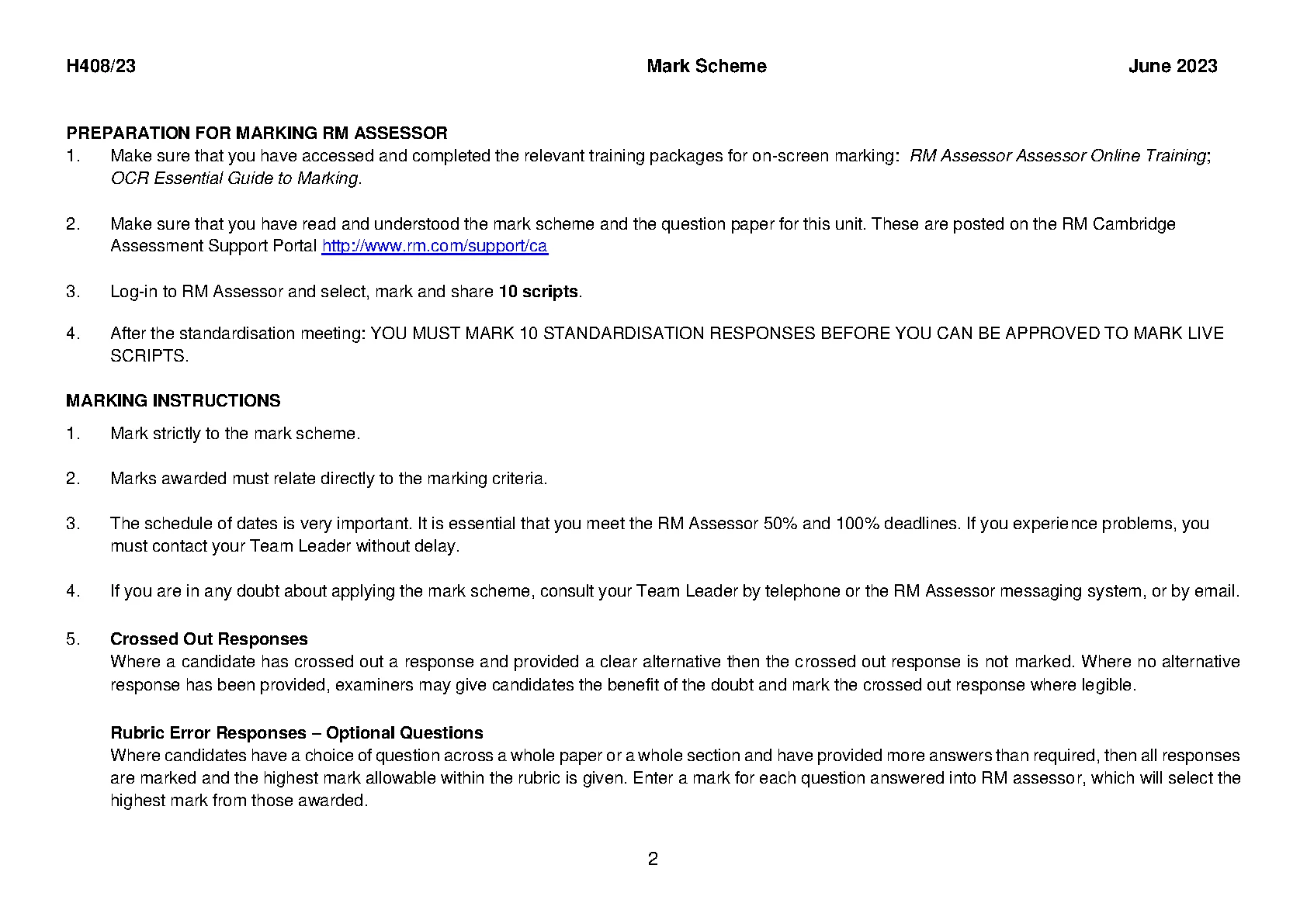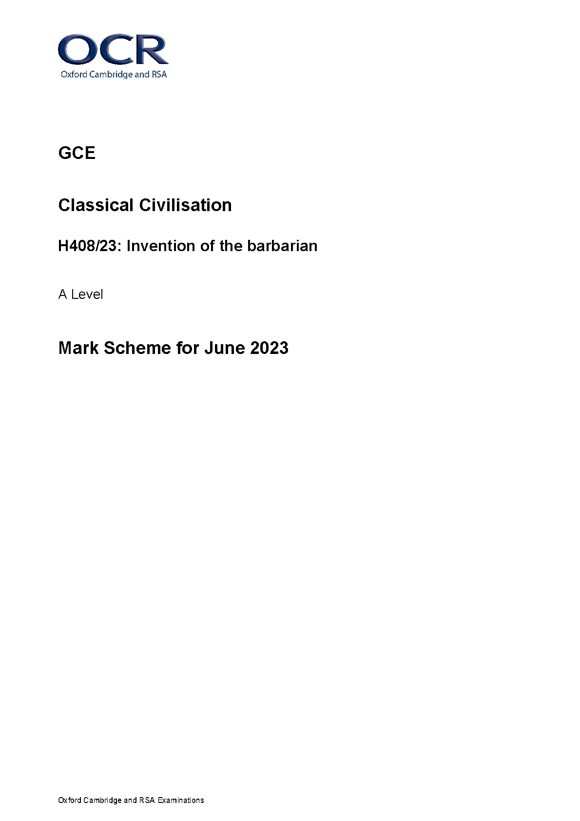 OCR A Level Classical Civilisation PAPER 2 2023 MARK SCHEME (H408/23: Invention of the Barbarian)