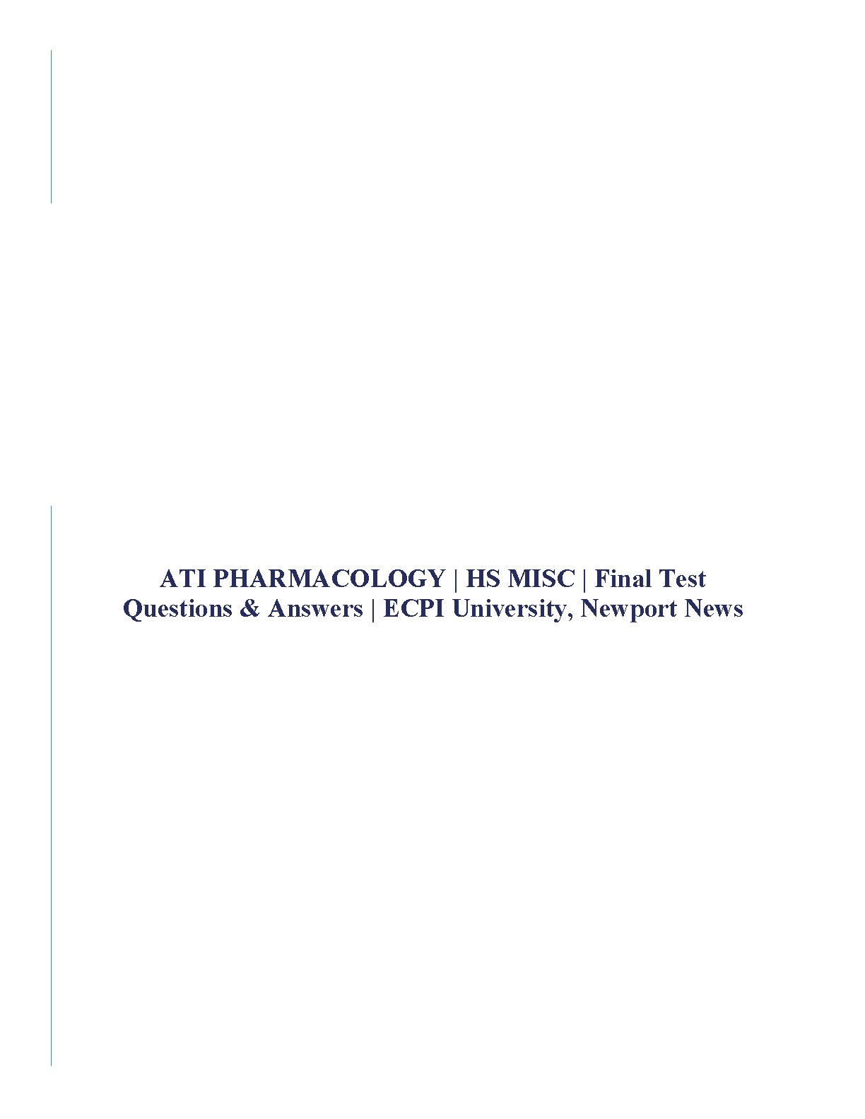 ATI PHARMACOLOGY | HS MISC | Final Test Questions & Answers | ECPI University, Newport News COMPLETE AND UPDATED SOLUTION. DOWNLOAD on www.hackedexams.com INSTANTLY.