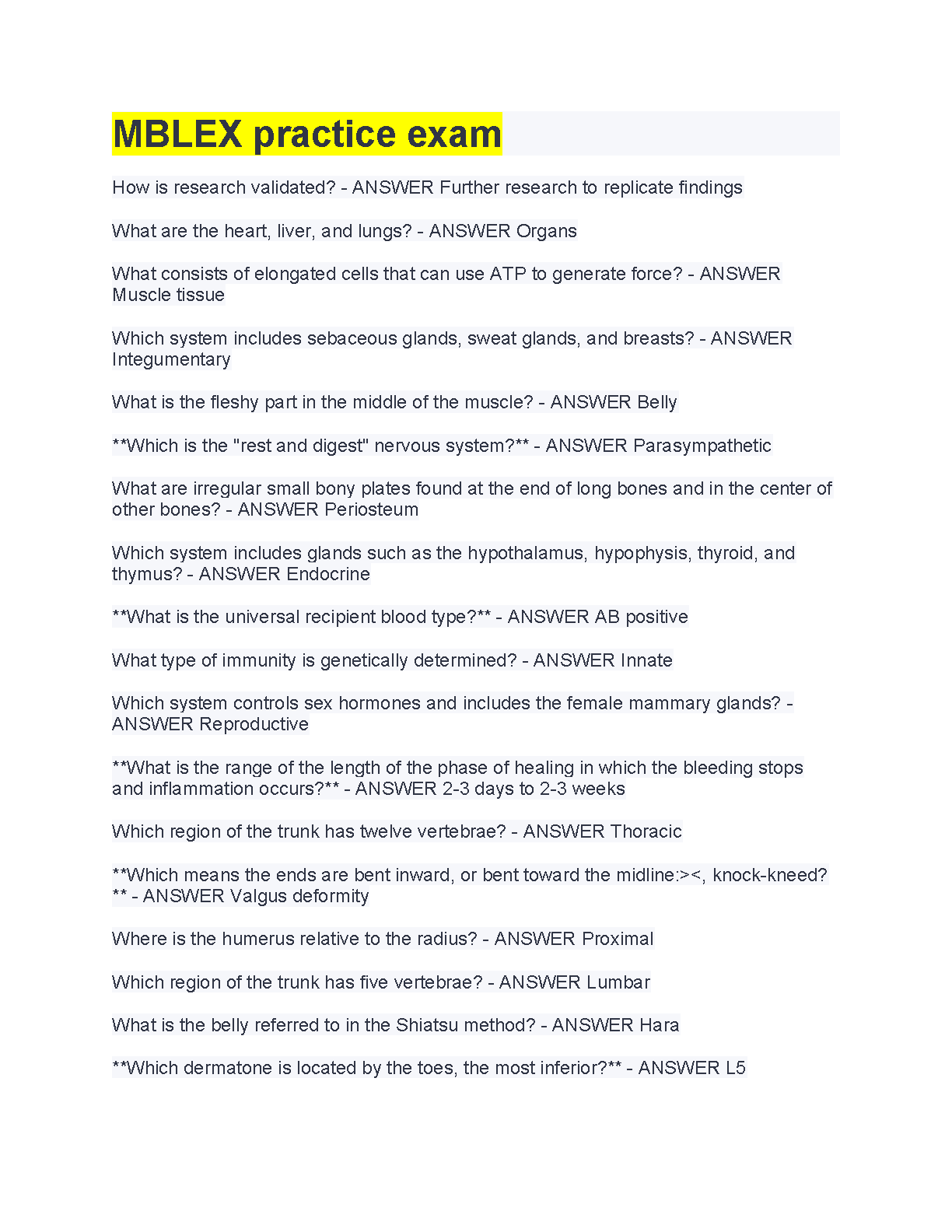 MBLEX practice exam FOR 2023/2024 UPDATED SOLUTION