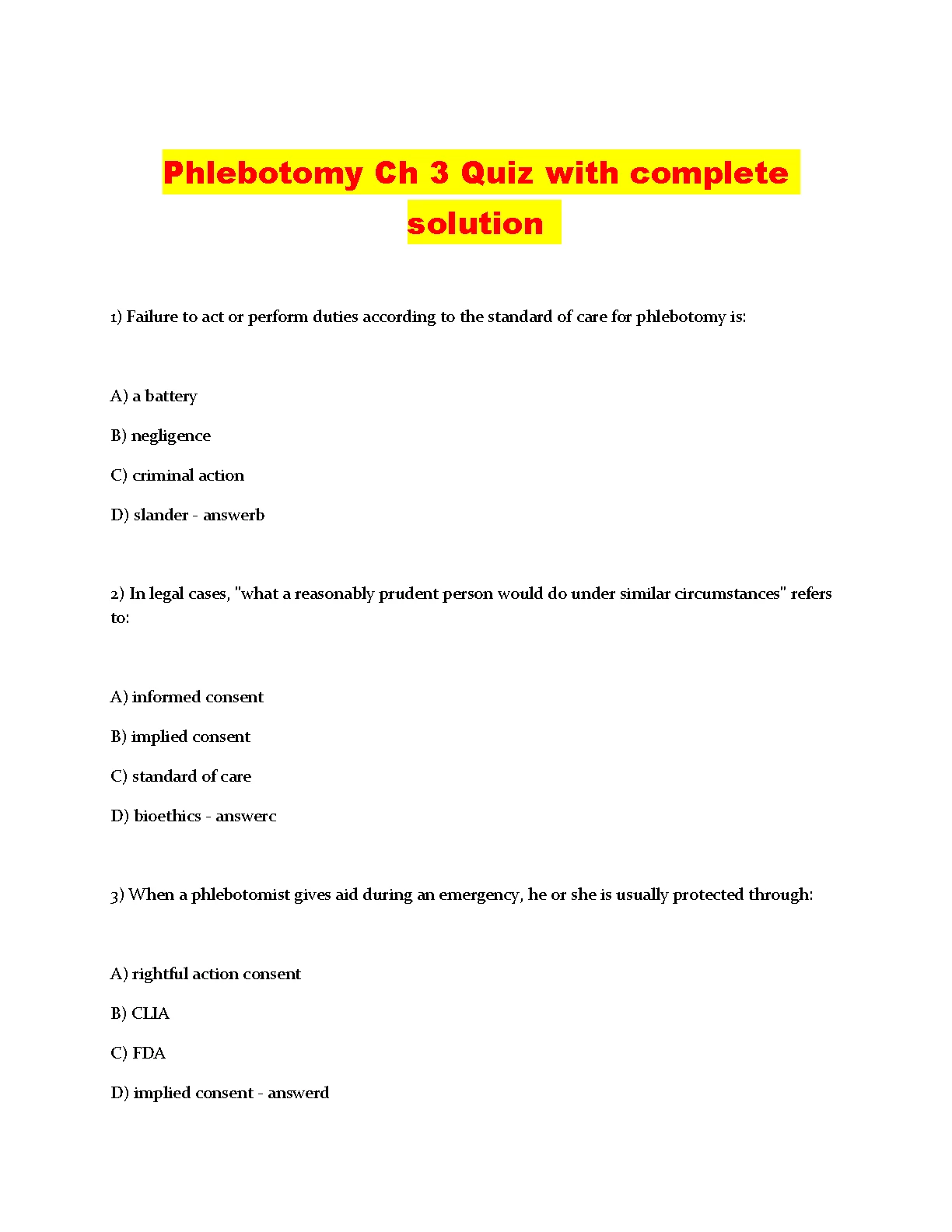 Phlebotomy Ch 3 Quiz with complete solution PACK FOR 2023/2024. DOWNLOAD on www.hackedexams.com INSTANTLY.