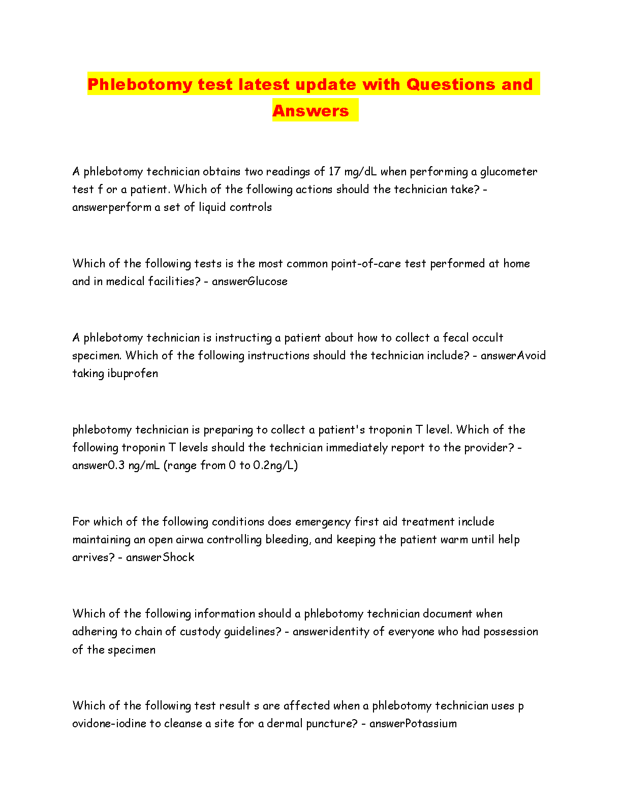 Phlebotomy test latest update with Questions and Answers GRADED A+