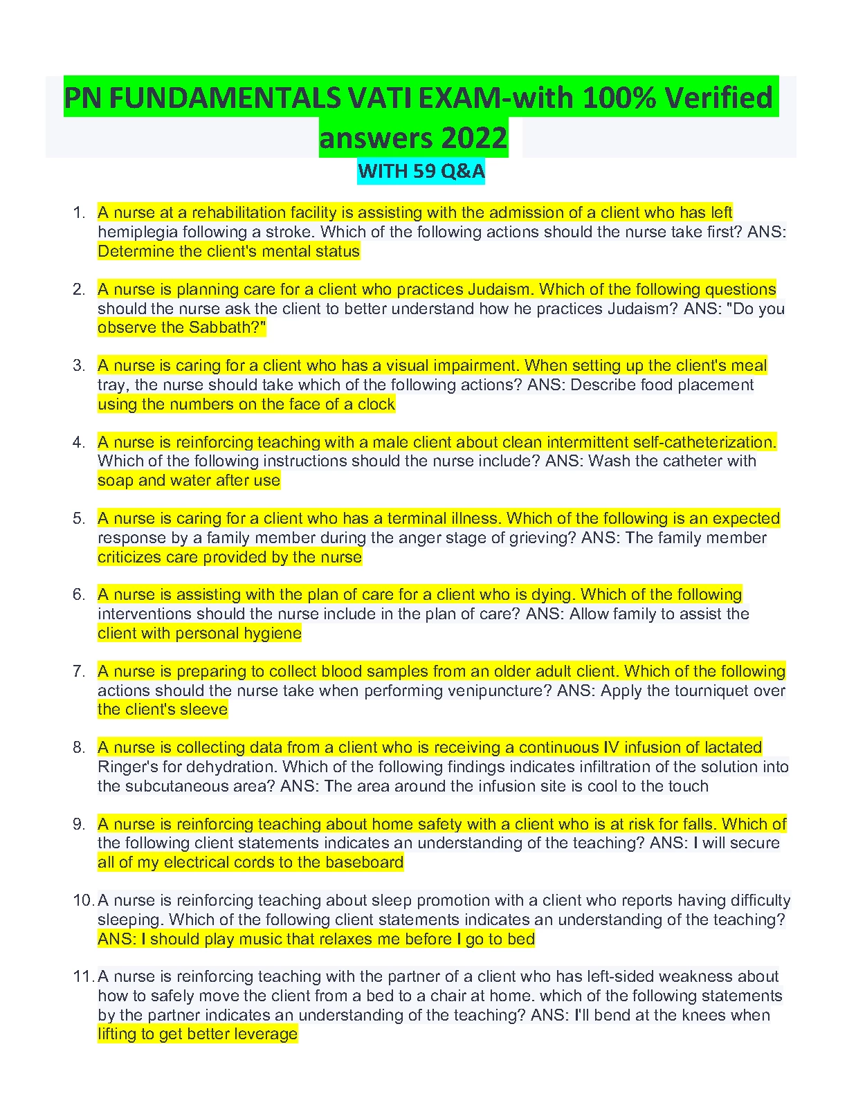 PN FUNDAMENTALS VATI EXAM with 100% Verified answers 2022/2023 WITH 59 Q&A