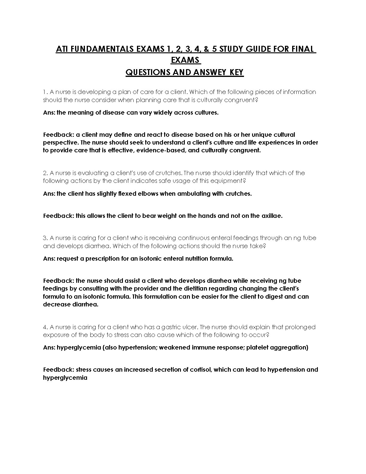 ATI FUNDAMENTALS EXAMS 1, 2, 3, 4, & 5 STUDY GUIDE FOR FINAL EXAMS QUESTIONS AND ANSWEY KEY