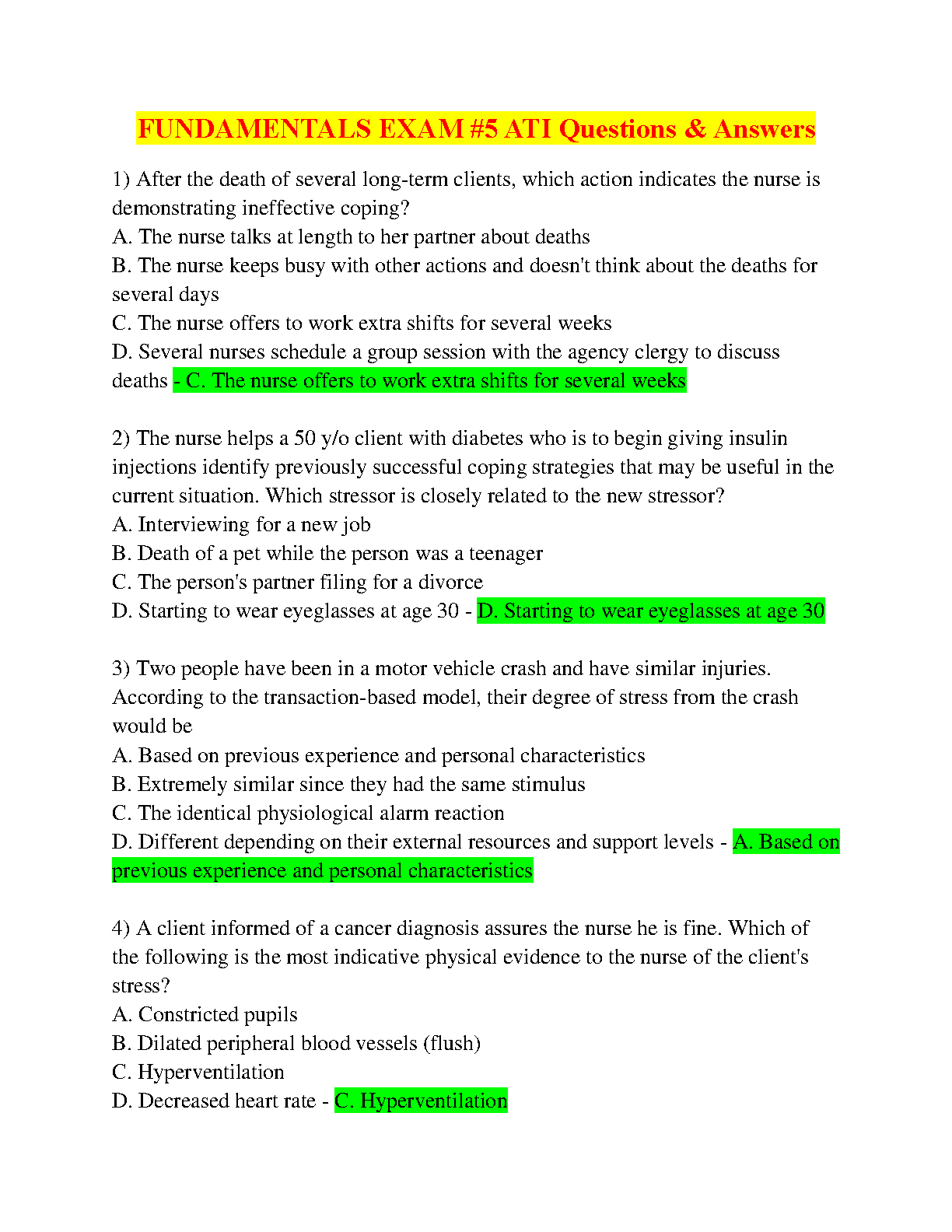 FUNDAMENTALS EXAM #5 ATI Questions & Answers 100% CORRECT