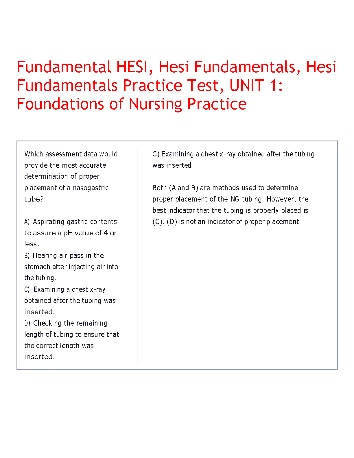 Fundamental HESI, Hesi Fundamentals, Hesi Fundamentals Practice Test, UNIT 1: Foundations of Nursing Practice