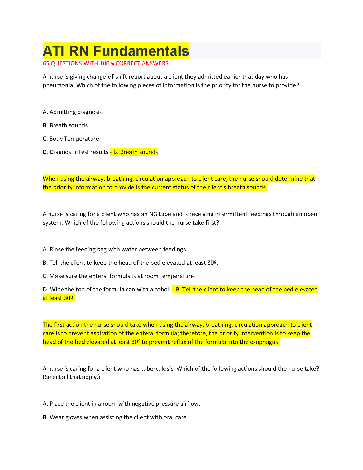 ATI RN Fundamentals 65 QUESTIONS WITH 100% CORRECT ANSWERS. DOWNLOAD on www.hackedexams.com INSTANTLY.