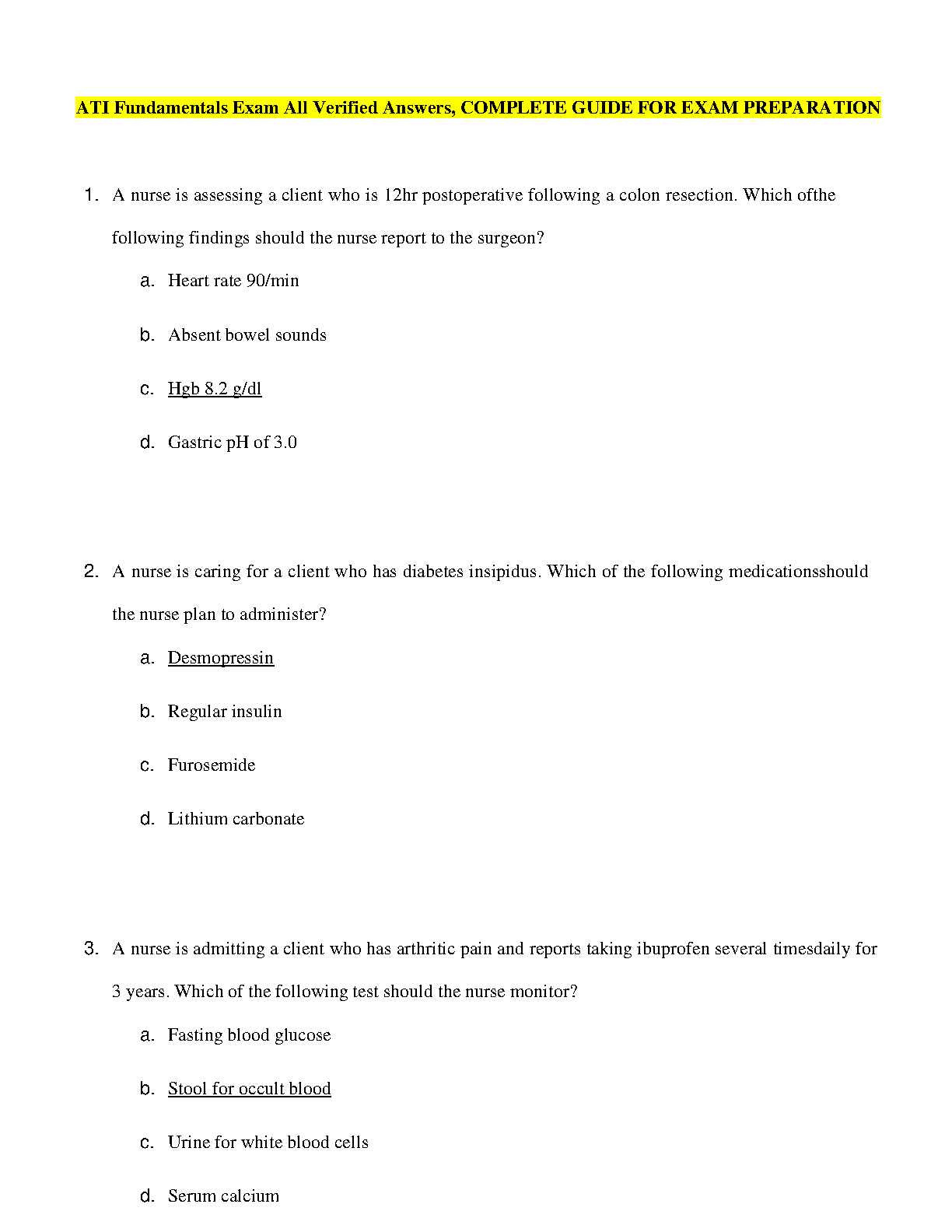 ATI Fundamentals Exam All Verified Answers, COMPLETE GUIDE FOR EXAM PREPARATION