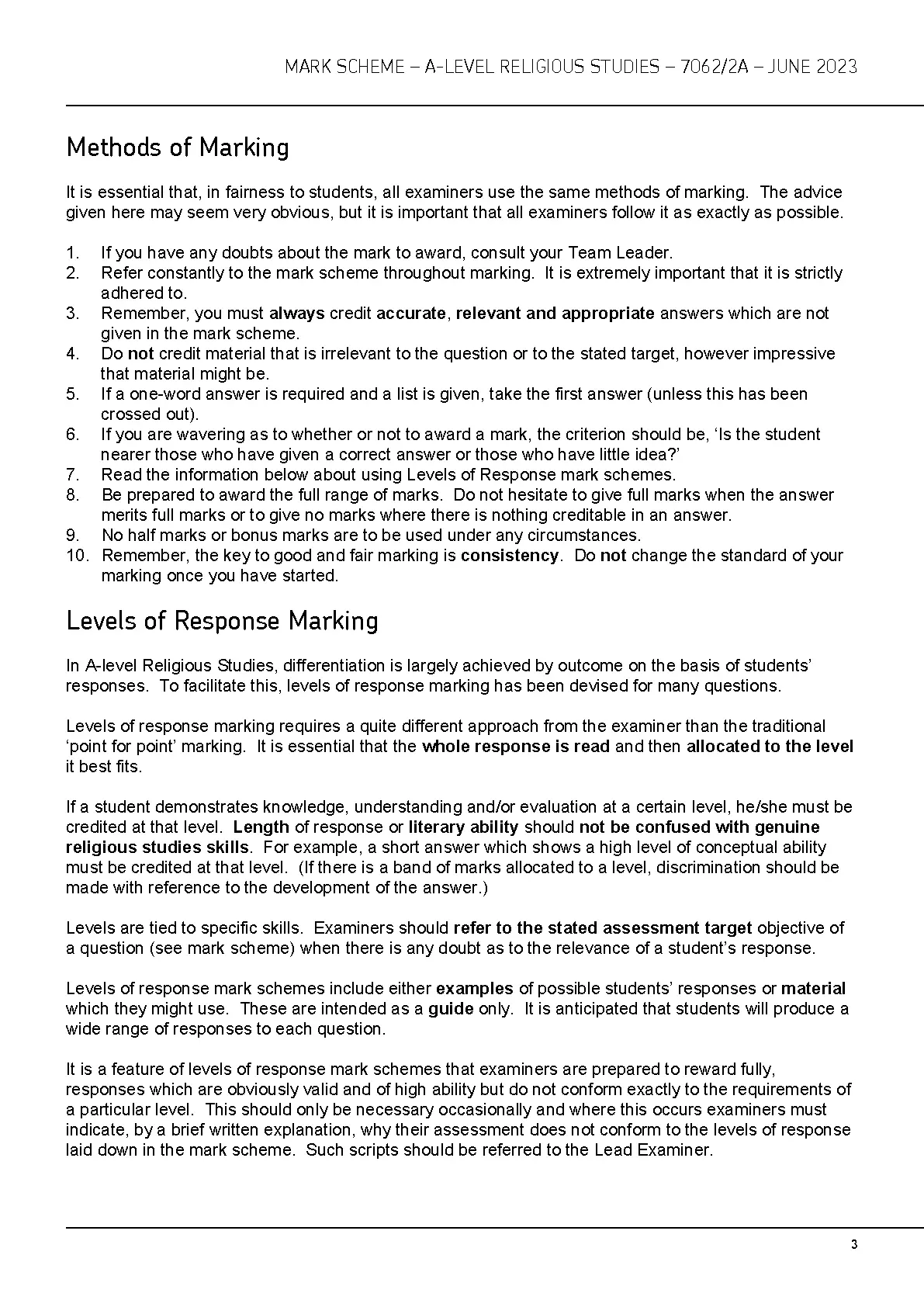 2023 AQA A LEVEL RELIGIOUS STUDIES PAPER 2A MARK SCHEME (7062/2A: Study of Religion and Dialogues: Buddhism).