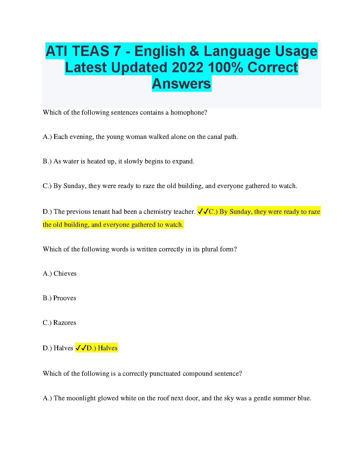 ATI TEAS 7 - English & Language Usage 100% Correct Answers