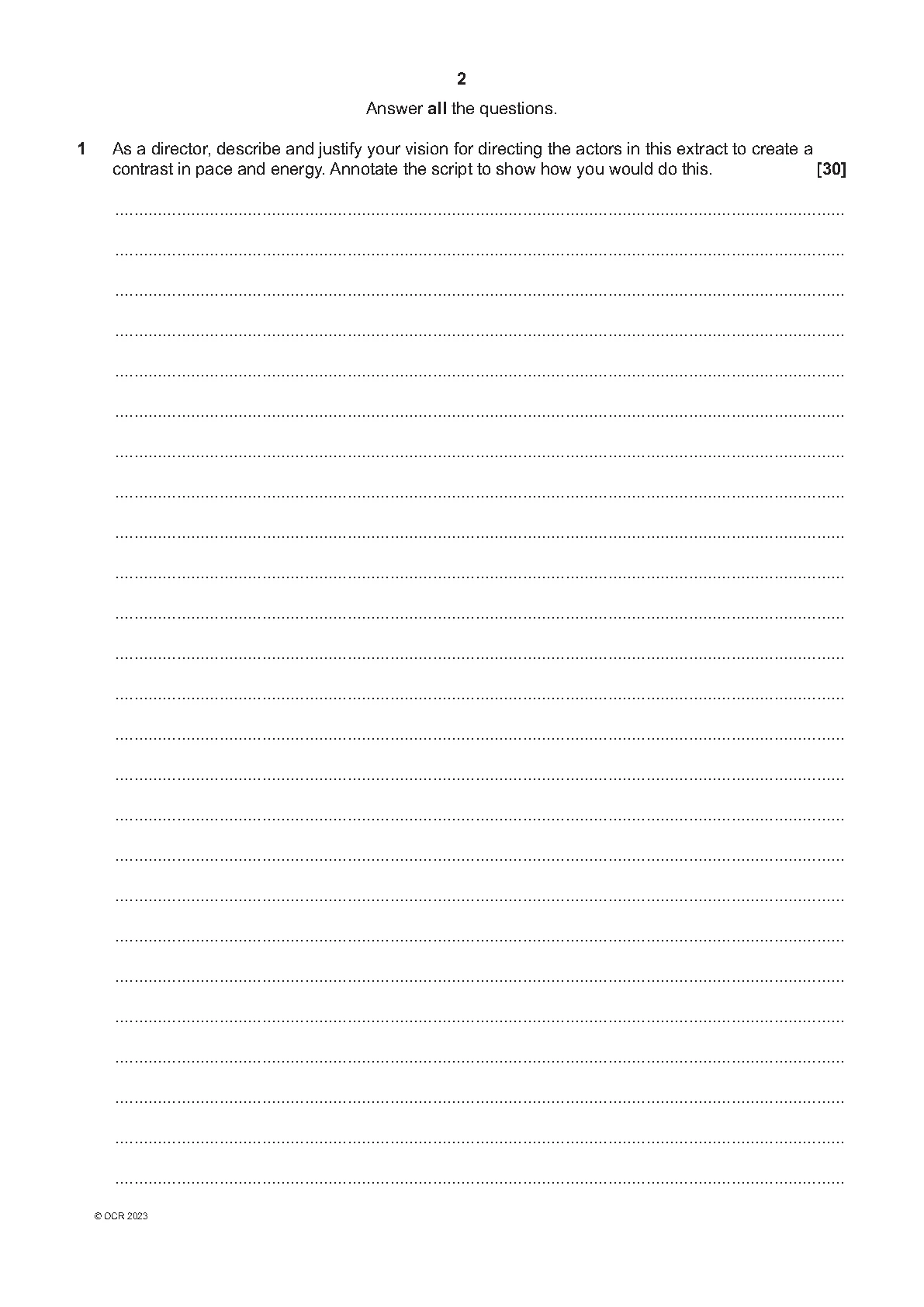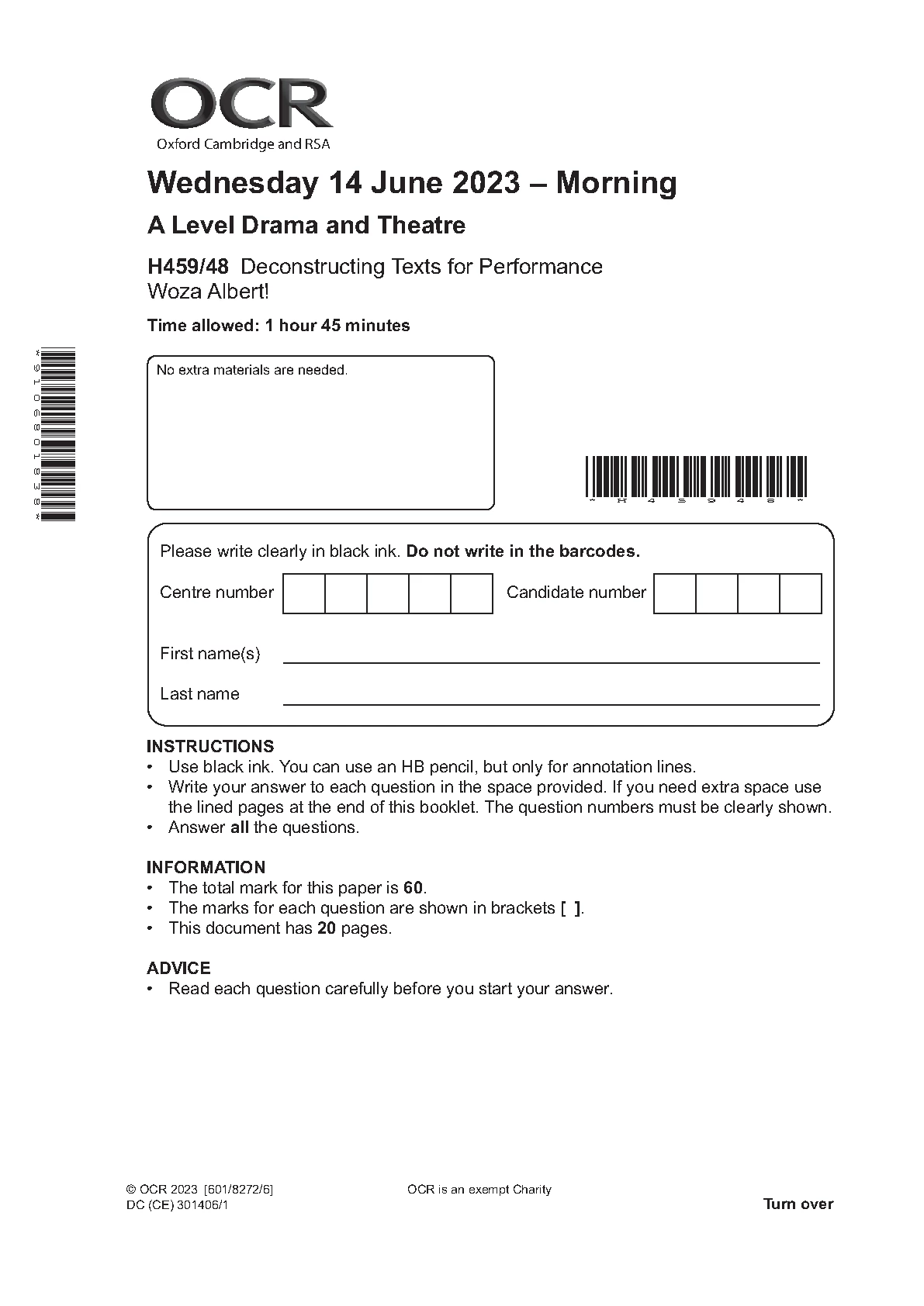 2023 OCR A LEVEL DRAMA AND THEATRE PAPER 4 QUESTION PAPER (H459/48: Deconstructing Texts for Performance Woza Albert!).