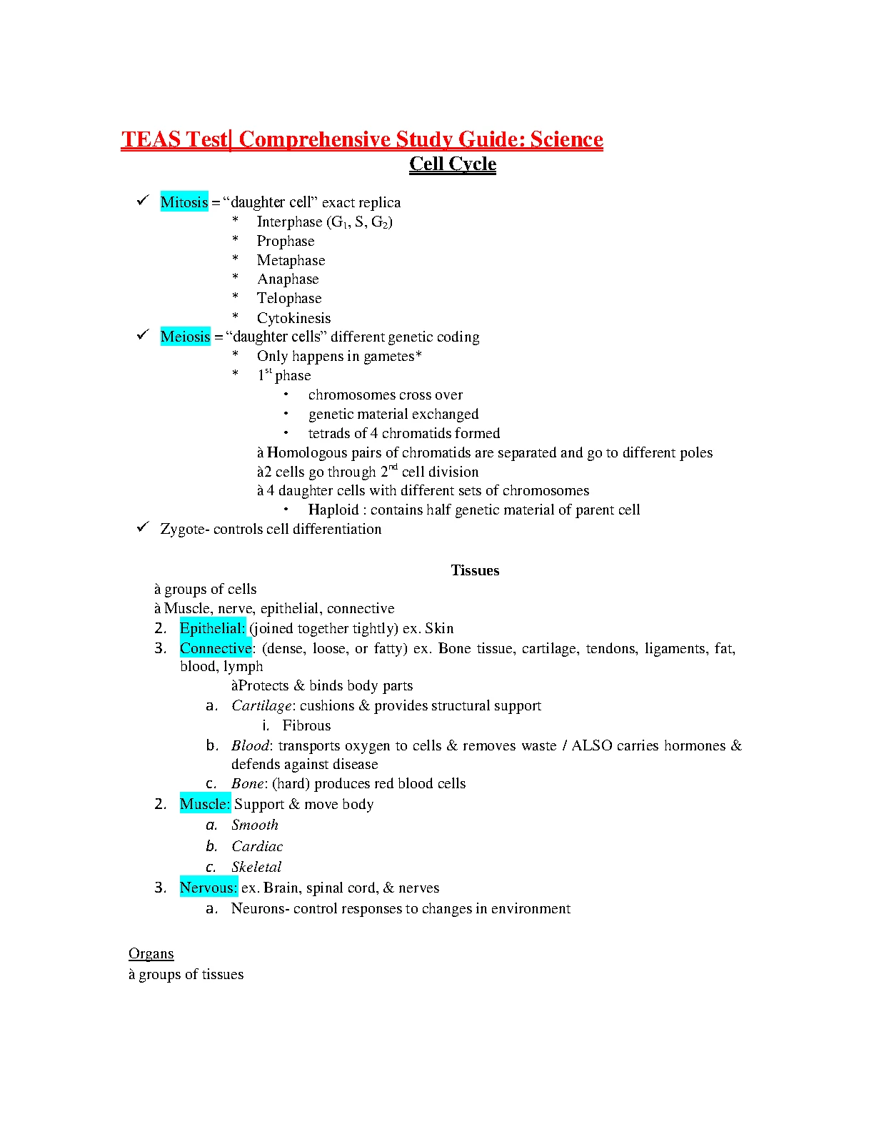 TEAS Test| Comprehensive Study Guide: Science STUDY GUIDE 2023/2024