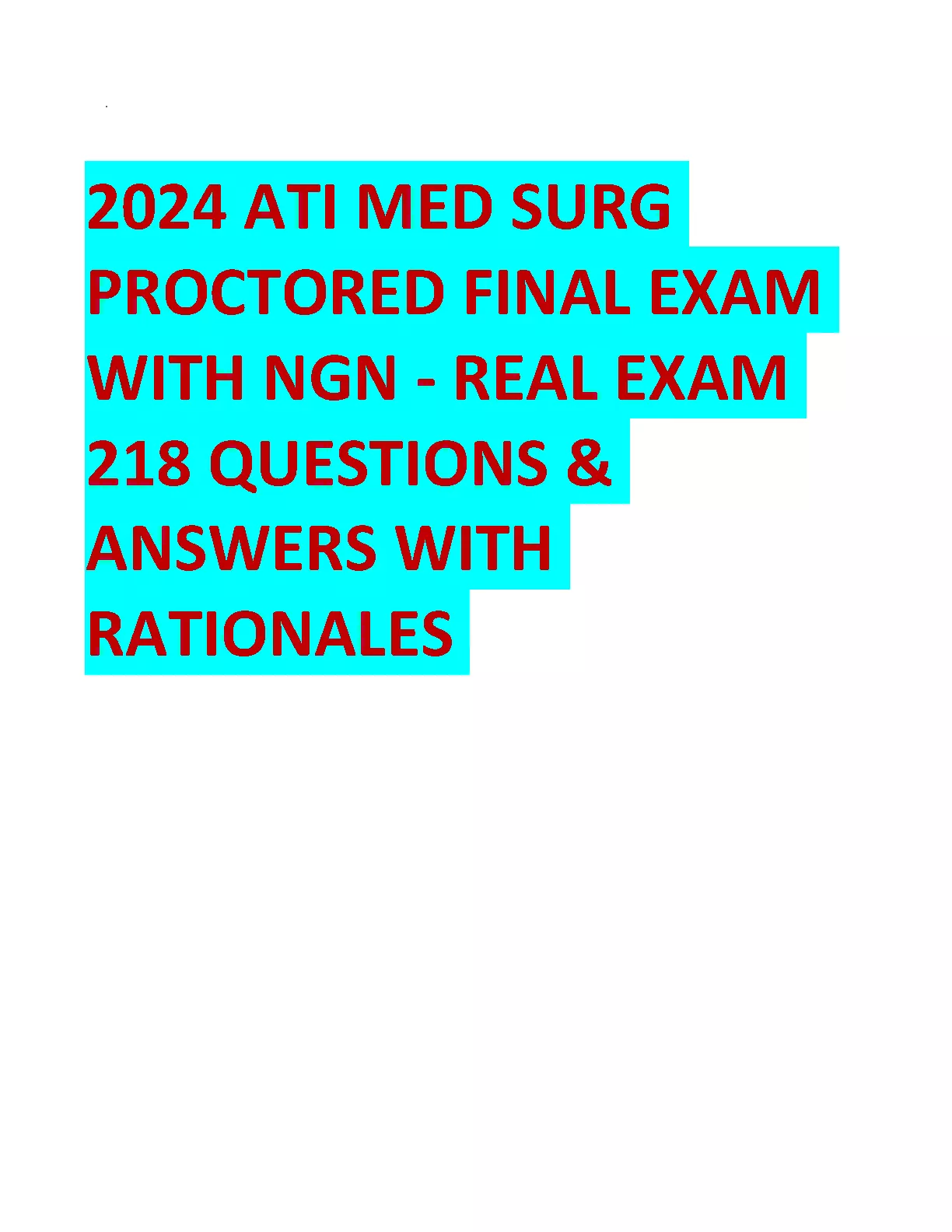 2024 ATI MED SURG PROCTORED FINAL EXAM WITH NGN REAL EXAM 218 QUESTIONS & ANSWERS WITH RATIONALES. DOWNLOAD on www.hackedexams.com INSTANTLY.