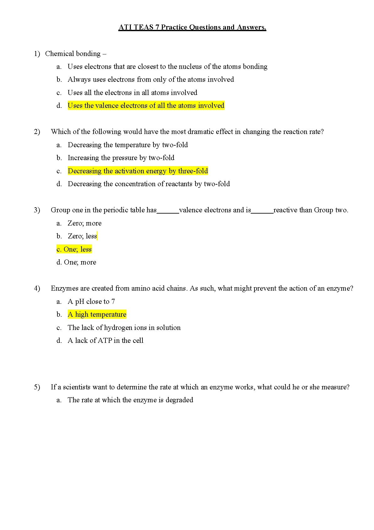 ATI TEAS 7 Practice Questions and Answers RATED A+