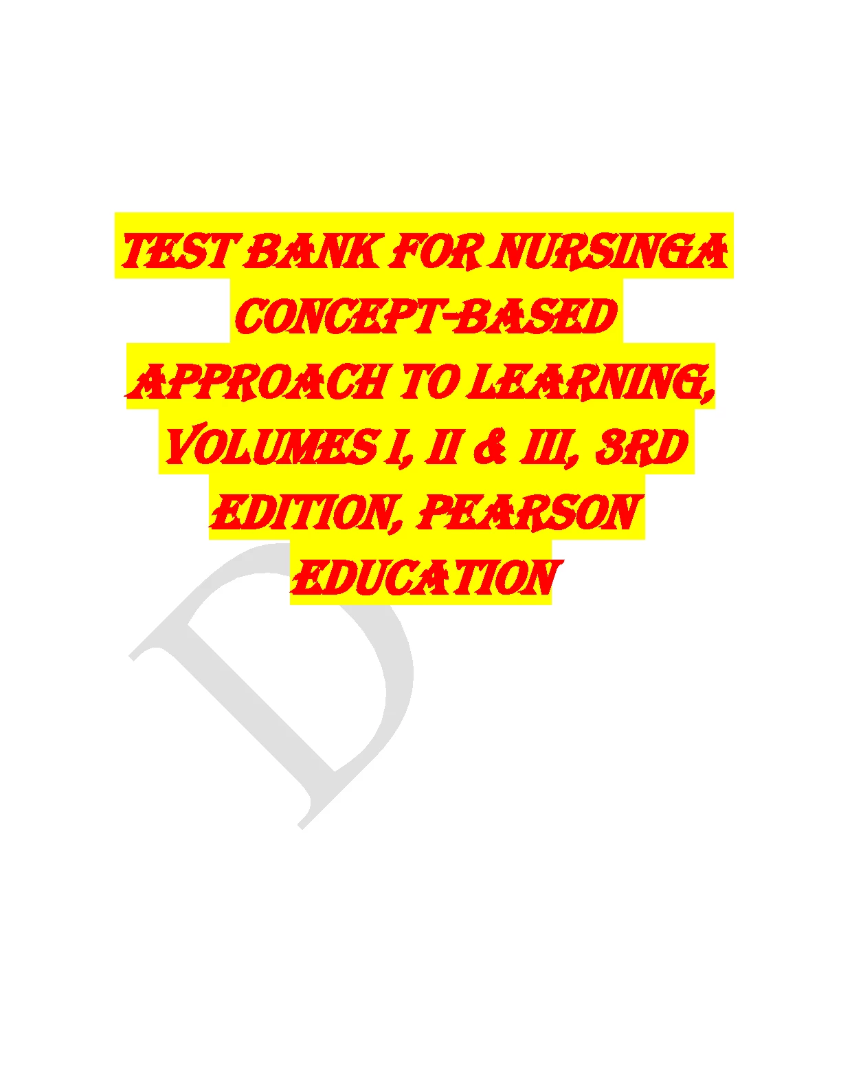 TEST BANK FOR NURSING A CONCEPT-BASED APPROACH TO LEARNING VOLUMES I II & III 3RD EDITION PEARSON EDUCATION