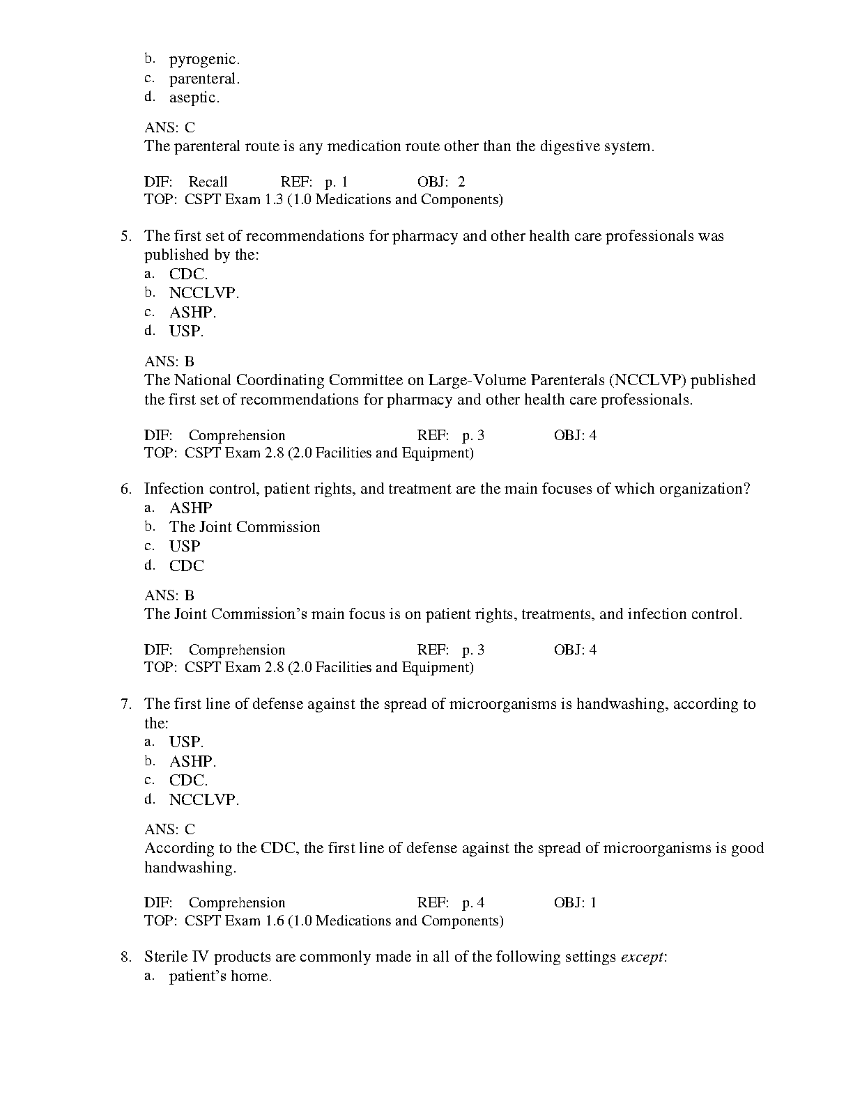 Test Bank for Davis: Mosby’s Sterile Compounding for Pharmacy Technicians, 2nd Edition