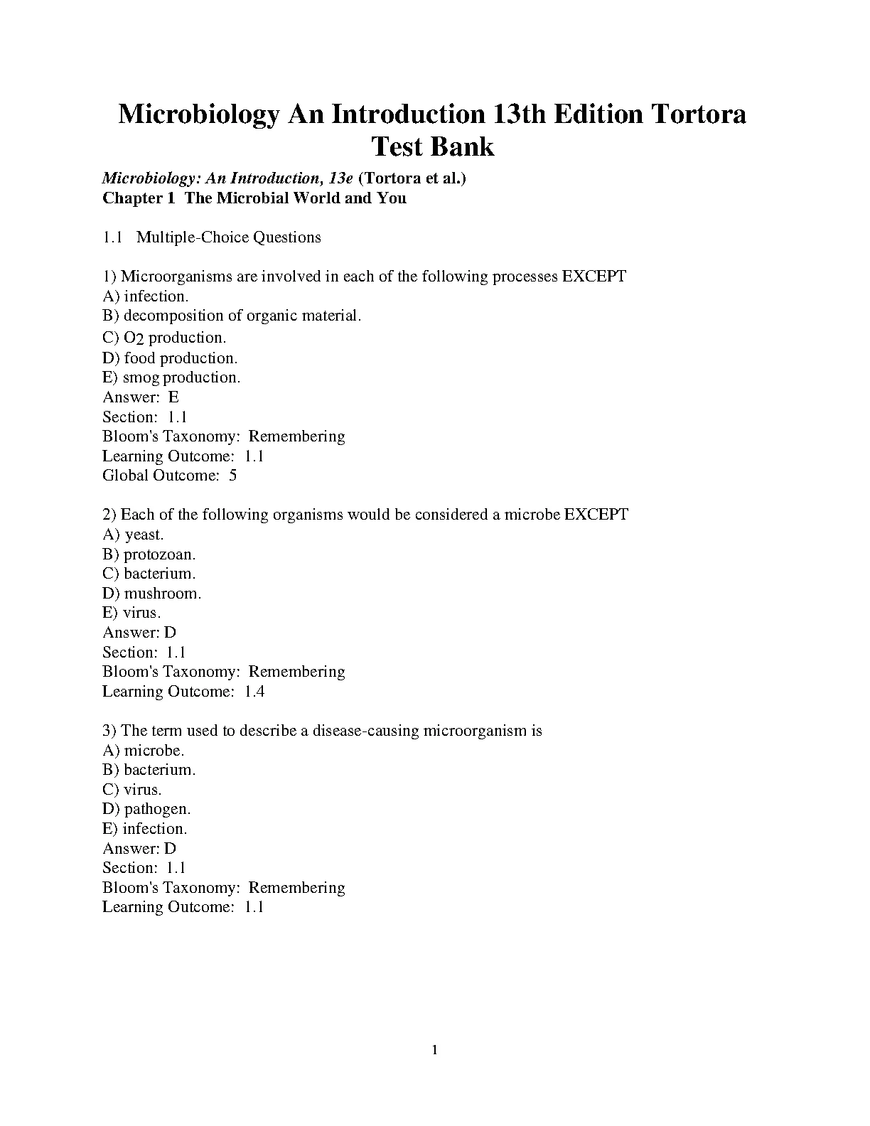 Test Bank for Microbiology: An Introduction, 13th Edition by Tortora et al.