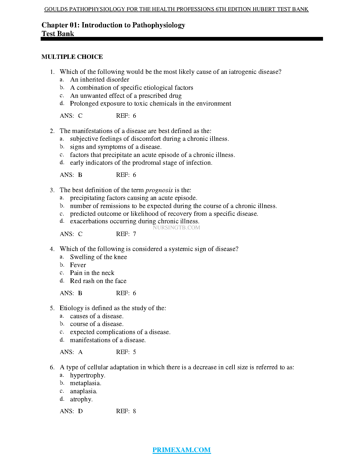 GOULDS PATHOPHYSIOLOGY FOR THE HEALTH PROFESSIONS 6TH EDITION HUBERT TEST BANK