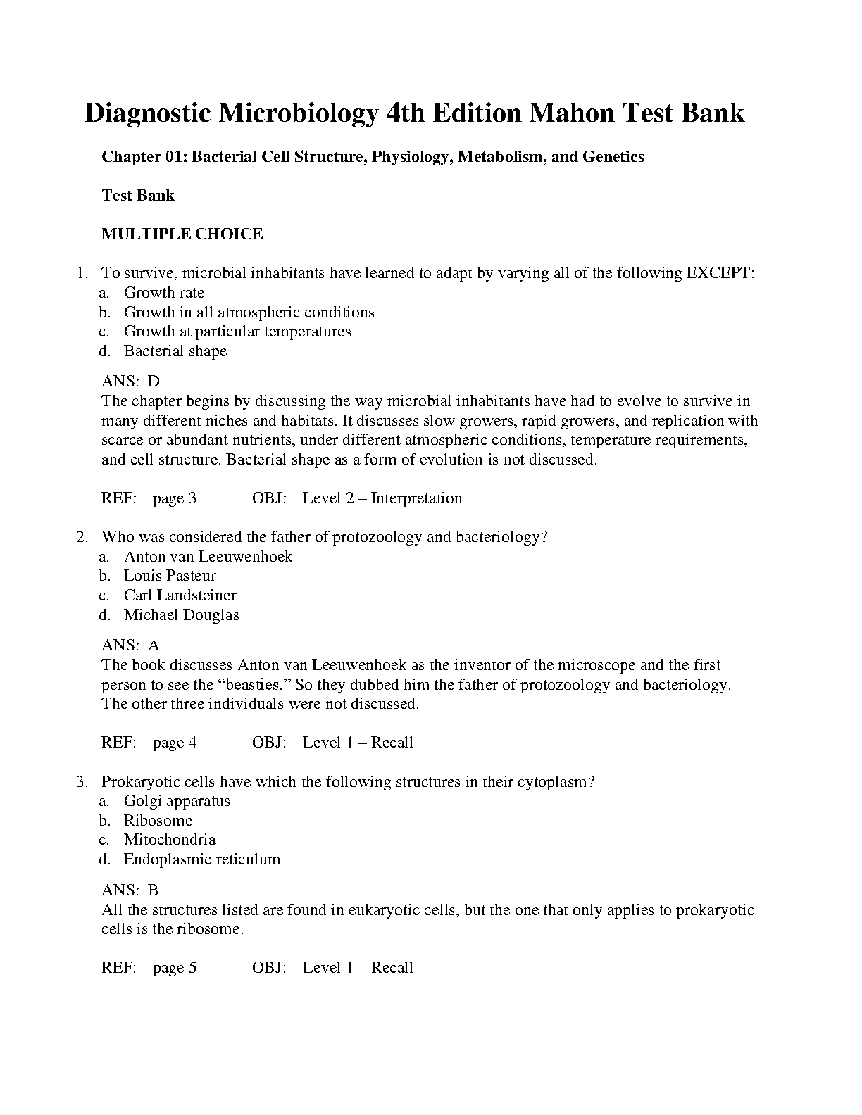 Diagnostic Microbiology 4th Edition Mahon Test Bank