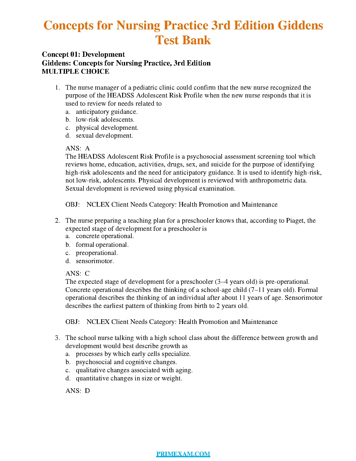 Concepts for Nursing Practice 3rd Edition Giddens Test Bank