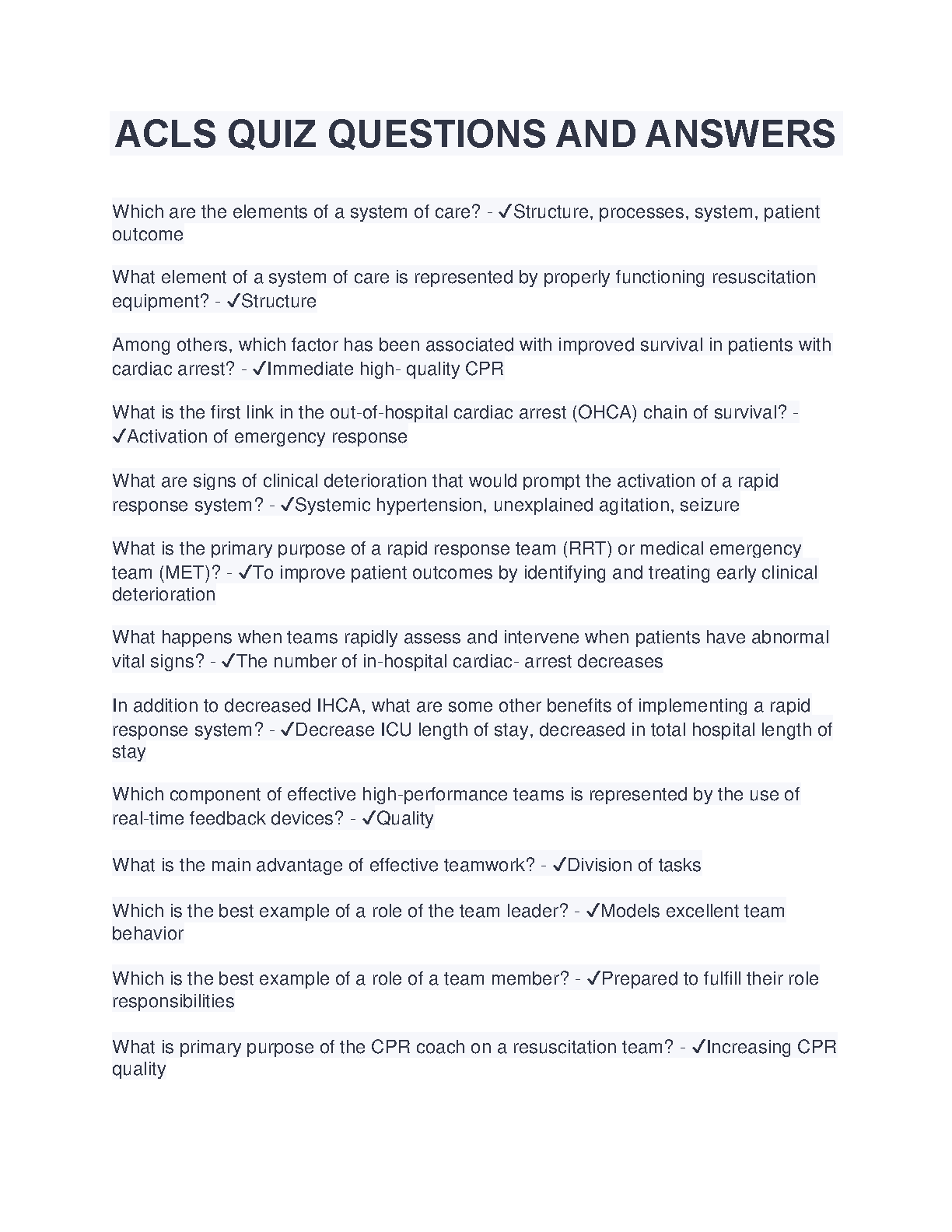 ACLS Quiz Questions and Answers for First Attempt Pass - Latest Edition 2024/2025