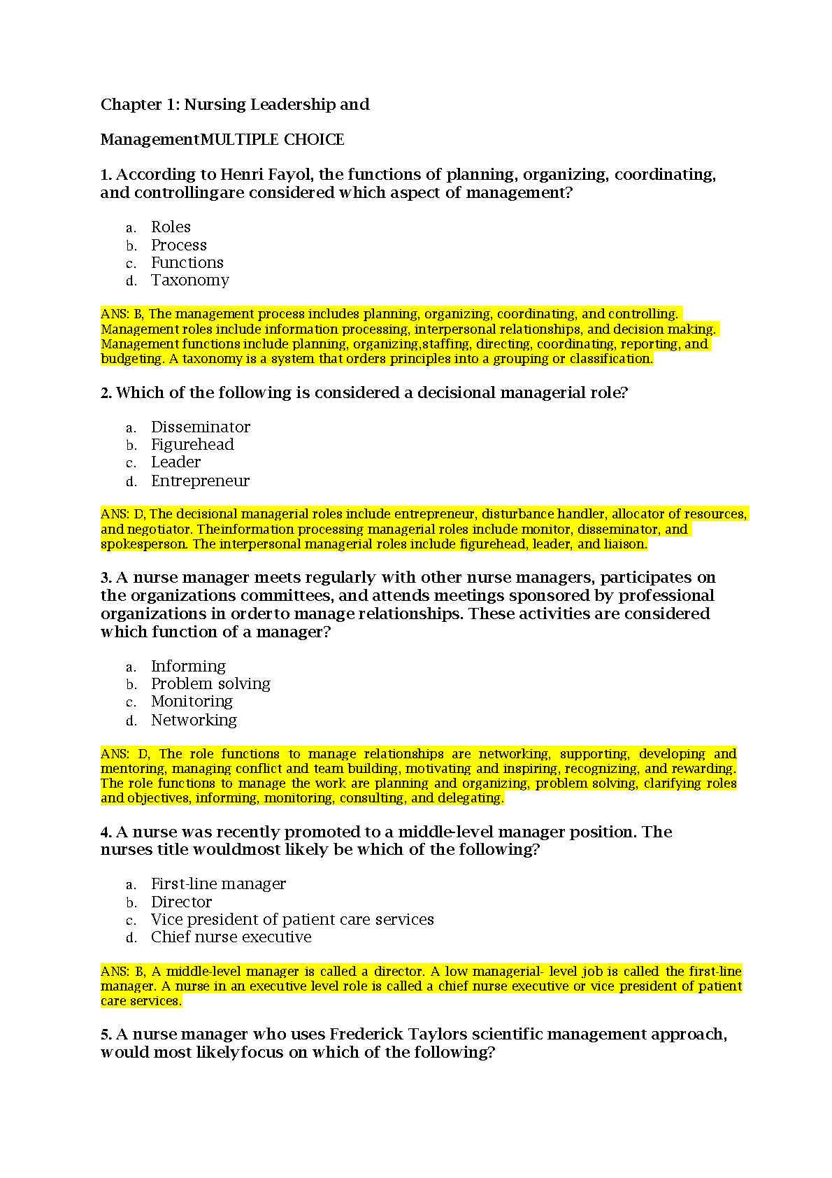 This nursing leadership and management test bank offers comprehensive coverage of all chapters, providing students with an extensive bank of practice questions to prepare for their exams. Master key concepts, enhance critical thinking skills, and achieve higher scores.