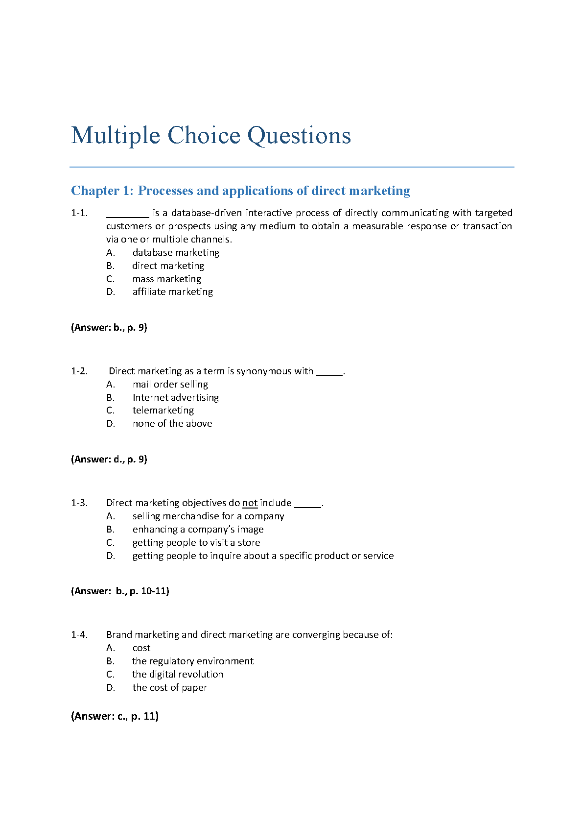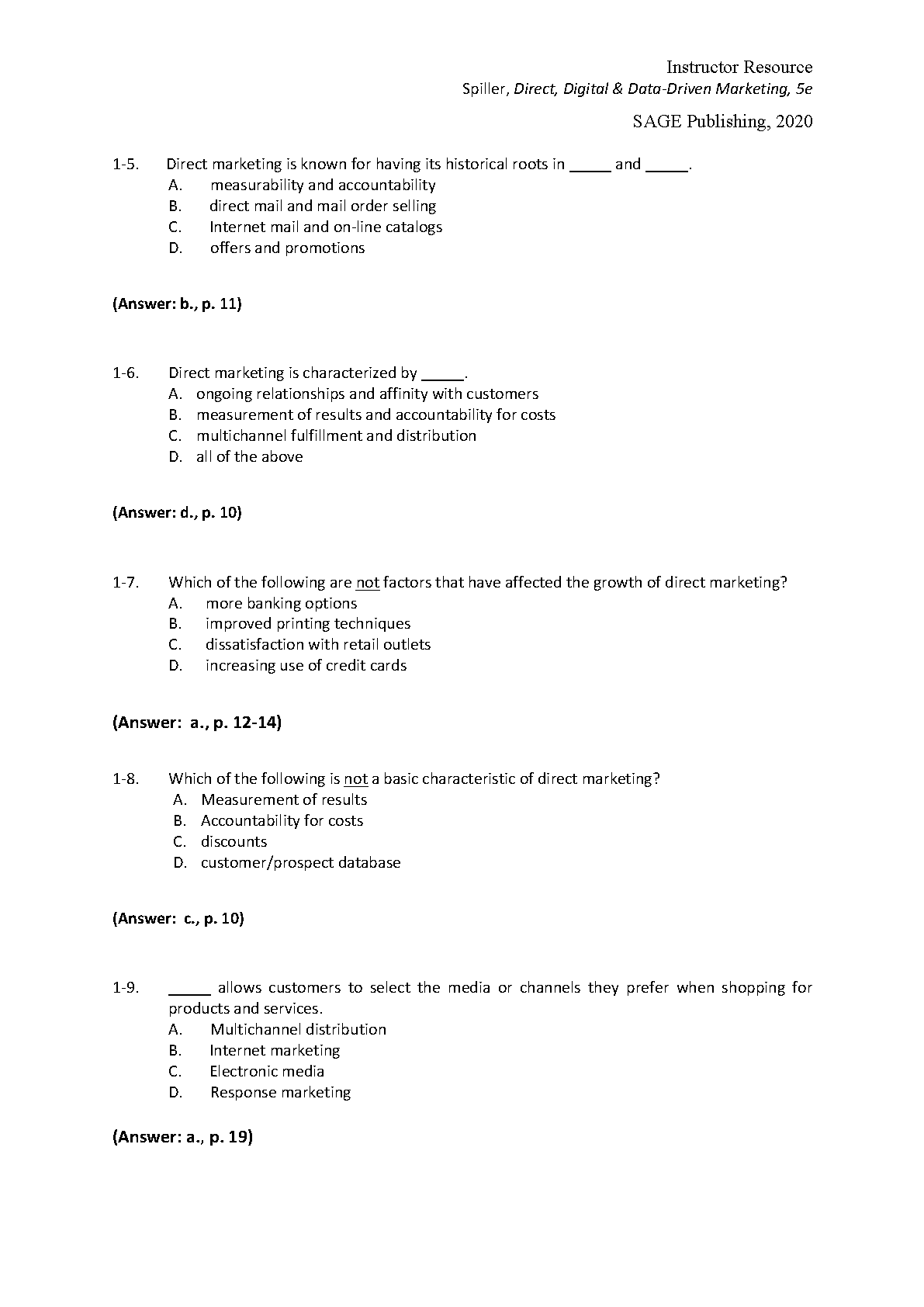 Ace your Direct, Digital & Data-Driven Marketing exams with this comprehensive 5th edition test bank by Lisa Spiller. Get access to a wide range of multiple-choice questions, true/false, and essay questions designed to test your knowledge and understanding of the key concepts.