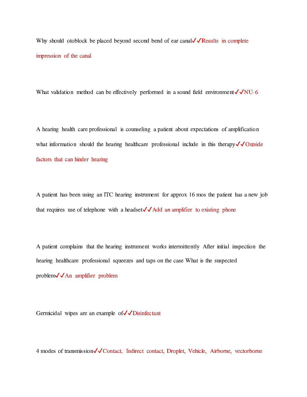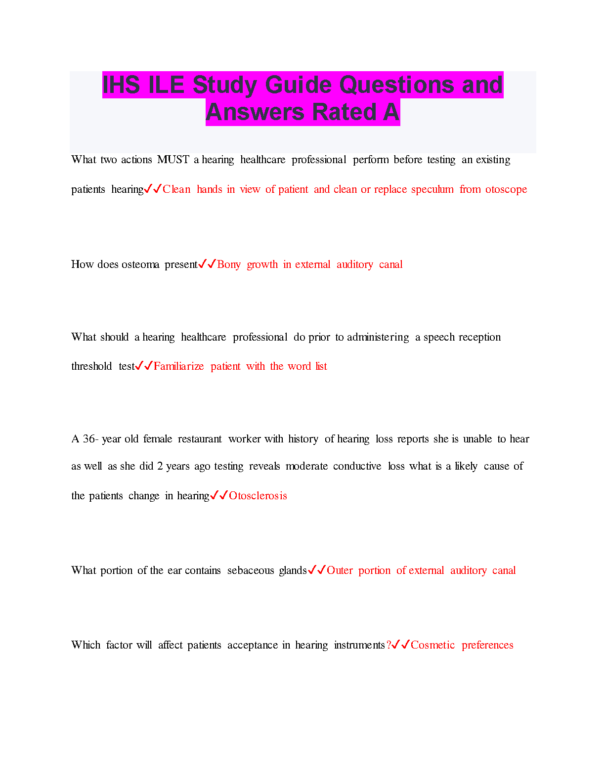IHS ILE Study Guide Questions and Answers Rated A - Pass Audiology Exams on the First Attempt