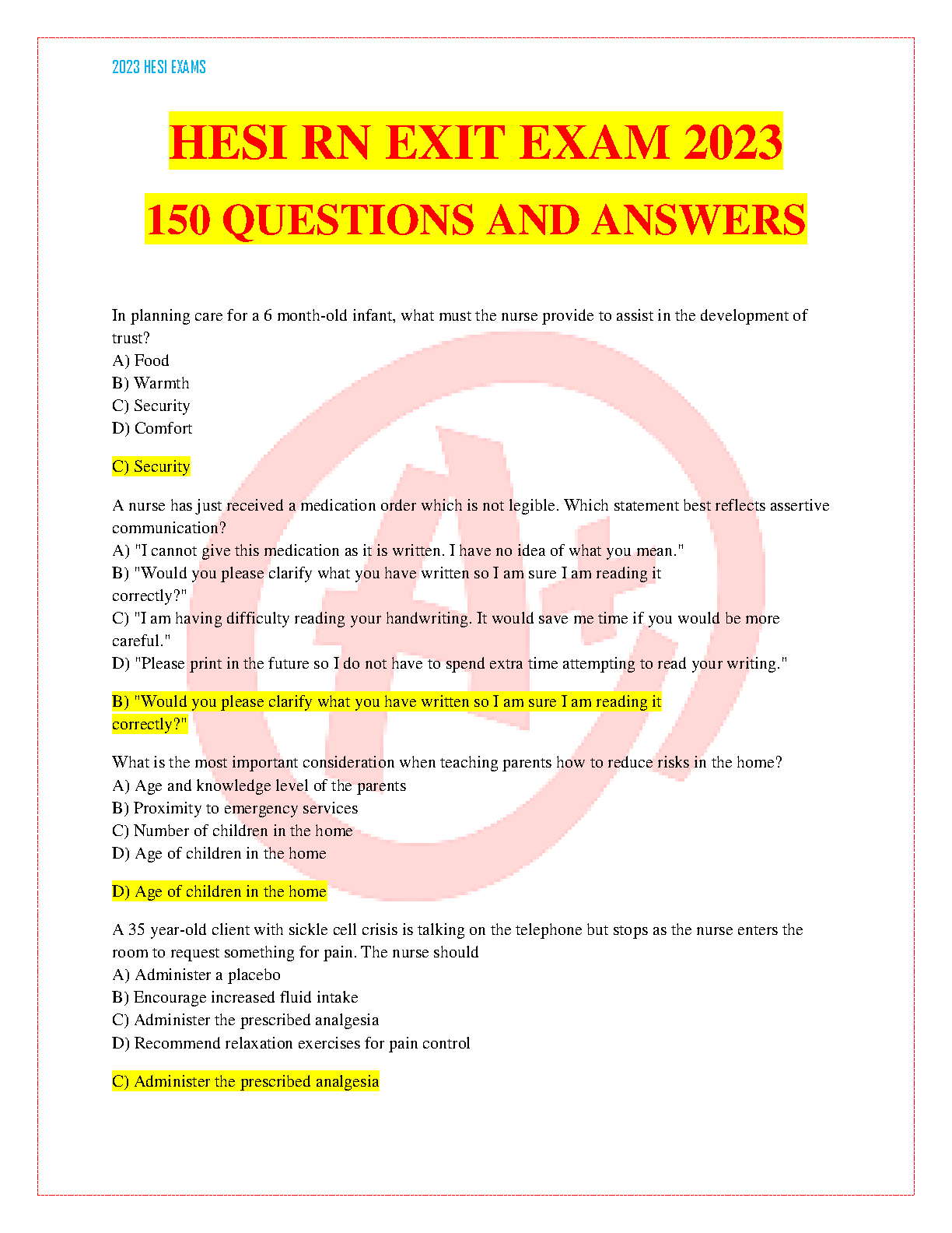 HESI RN Exit Exam 2023 - 150 Questions and Answers - Prepare for Success with the Latest Edition