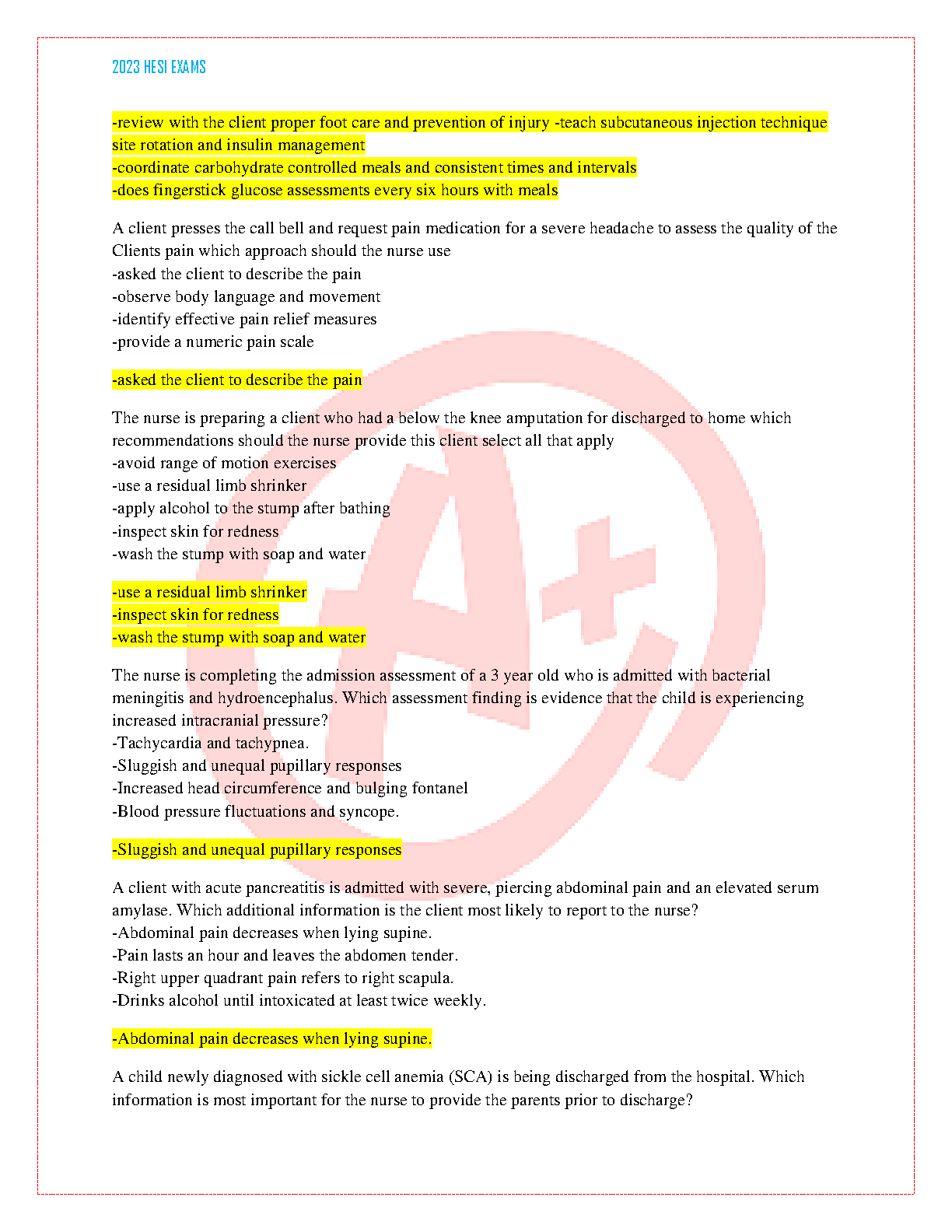 HackedExams is the website to download all resources for students who want to pass their exams on their first attempt. Our website offers all exam materials, including practice questions with answers, test banks, study guides, notes, summaries, and more for nursing, computer science, biology, psychology, law, and others. With resources from popular exam bodies like ATI, AQA, OCR, Edexcel, Comptia, Azure, and more, you'll easily find everything you need to get certified. Avoid resitting exams; trust in HackedExams.com to give you the resources to pass on your first attempt. Get access to exams from 2019 to 2023 and start your path to success today. "Avoid resits, get certified within days, and pass your exams on your first attempt."