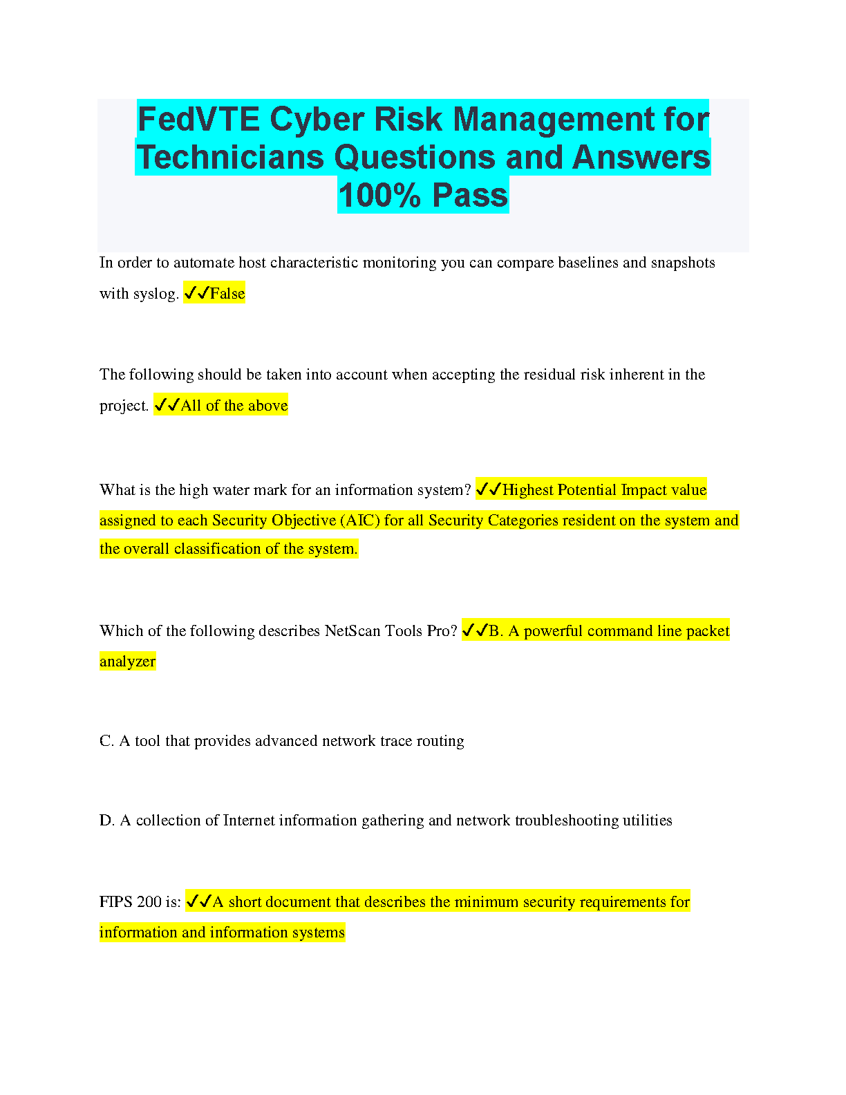 This comprehensive guide provides a complete collection of FedVTE Cyber Risk Management for Technicians questions and answers, designed to help you ace your exams and avoid resits. With detailed explanations and real-world examples, this resource covers every key concept and ensures your success in the 2024/2025 academic year.