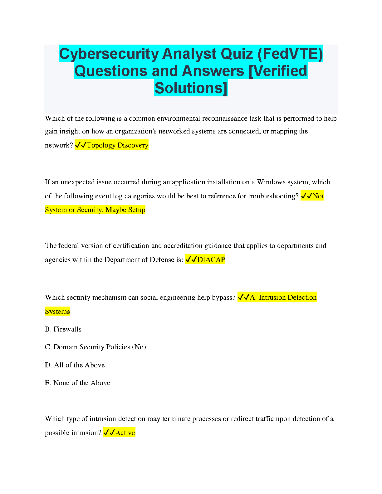 Cybersecurity Analyst Quiz (FedVTE) Questions and Answers [Verified Solutions]