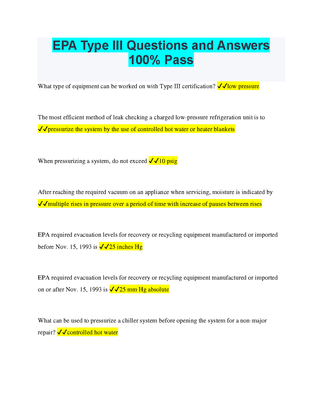 EPA Type III Questions and Answers 100% Pass - 2024/2025 Edition