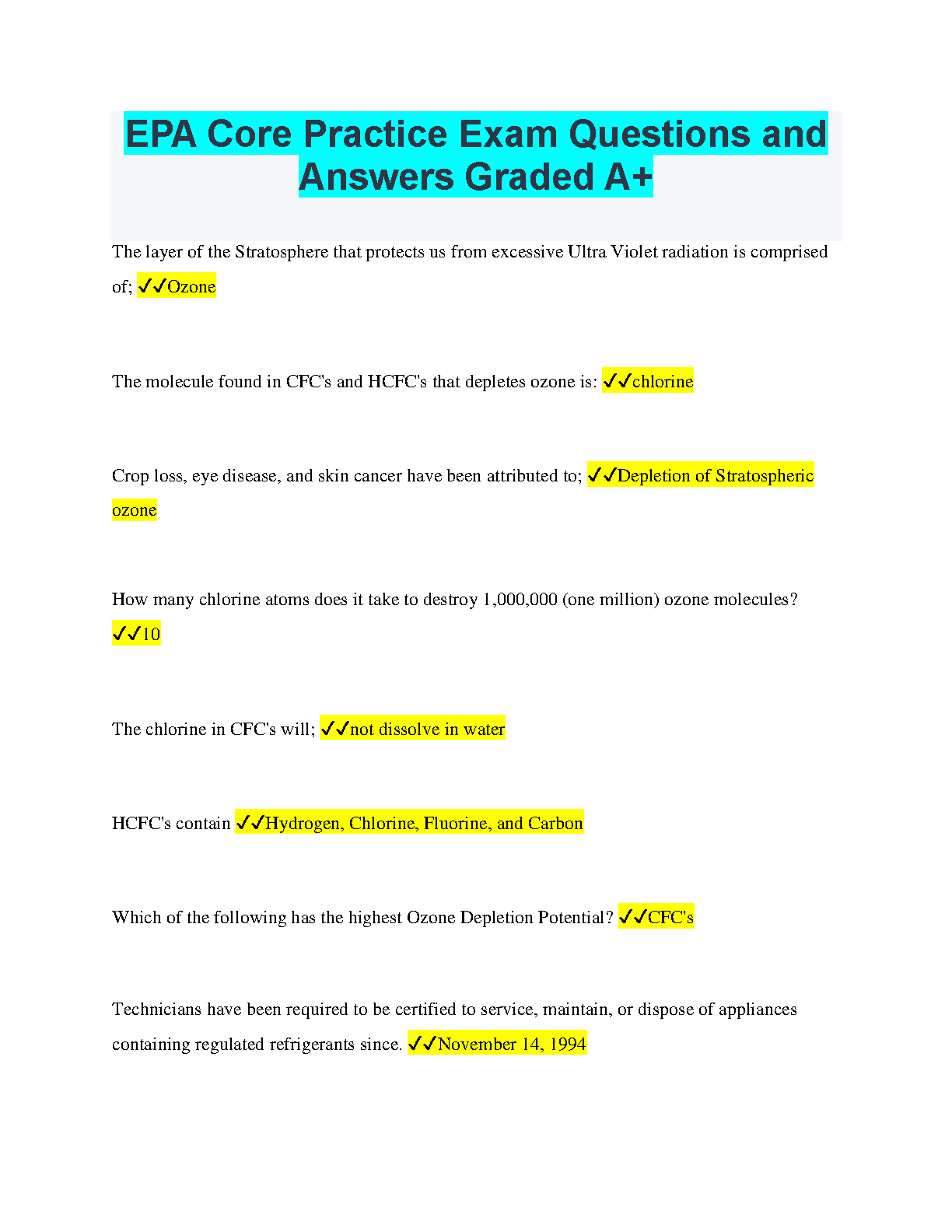 EPA Core Practice Exam Questions and Answers Graded A+ for 2024/2025 - Ace Your Exam First Attempt