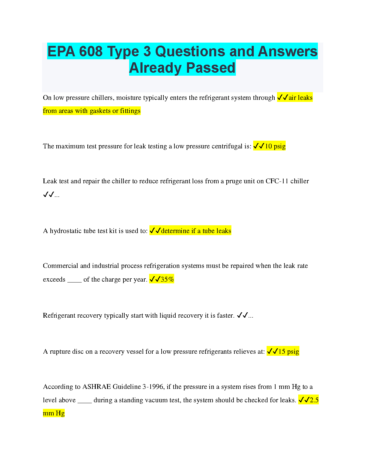 EPA 608 Type 3 Questions and Answers by [Name of Author] - 2024/2025 Edition