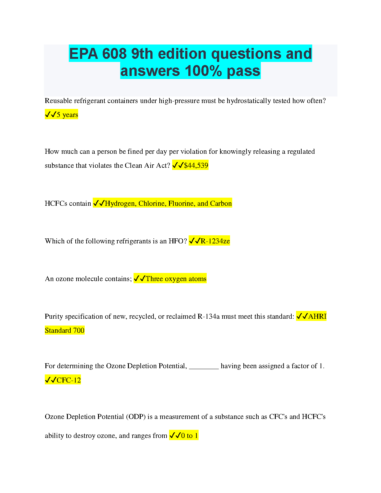EPA 608 9th Edition Questions and Answers 100% Pass: Ace Your Exam on the First Attempt!