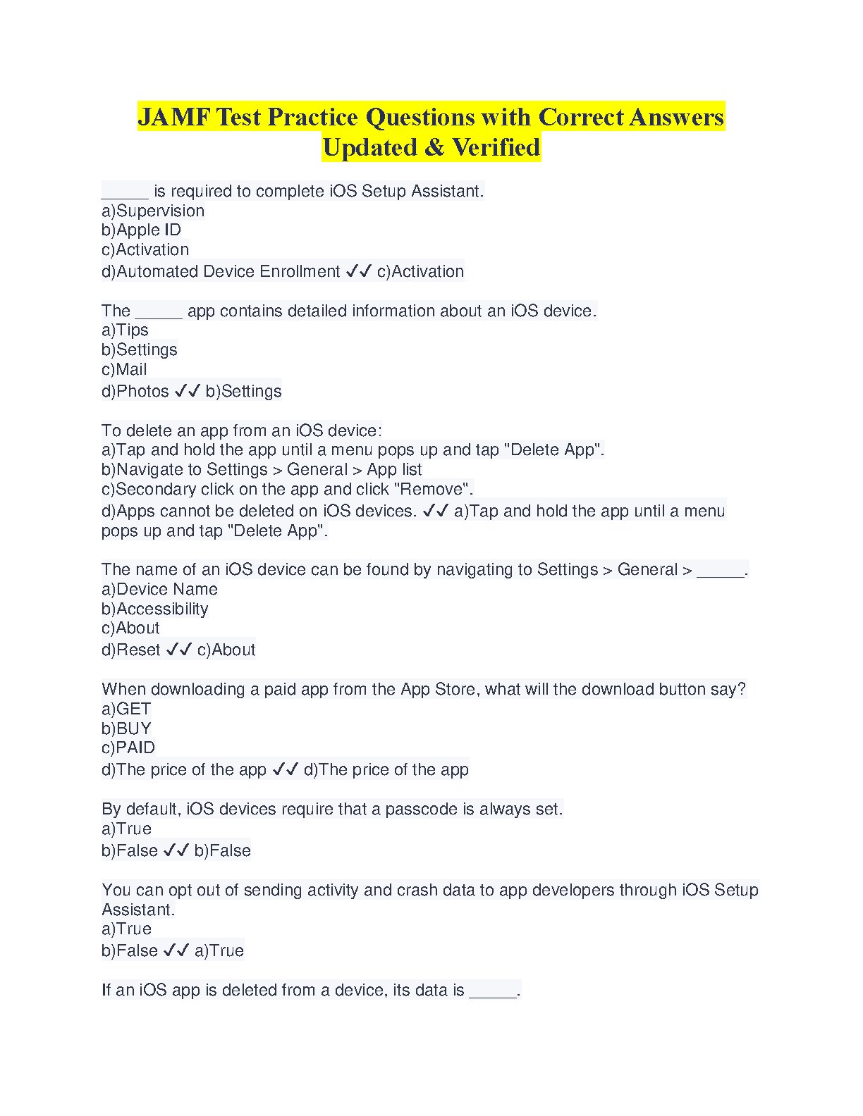 JAMF Test Practice Questions with Correct Answers Updated & Verified: Pass Your Exam on the First Try
