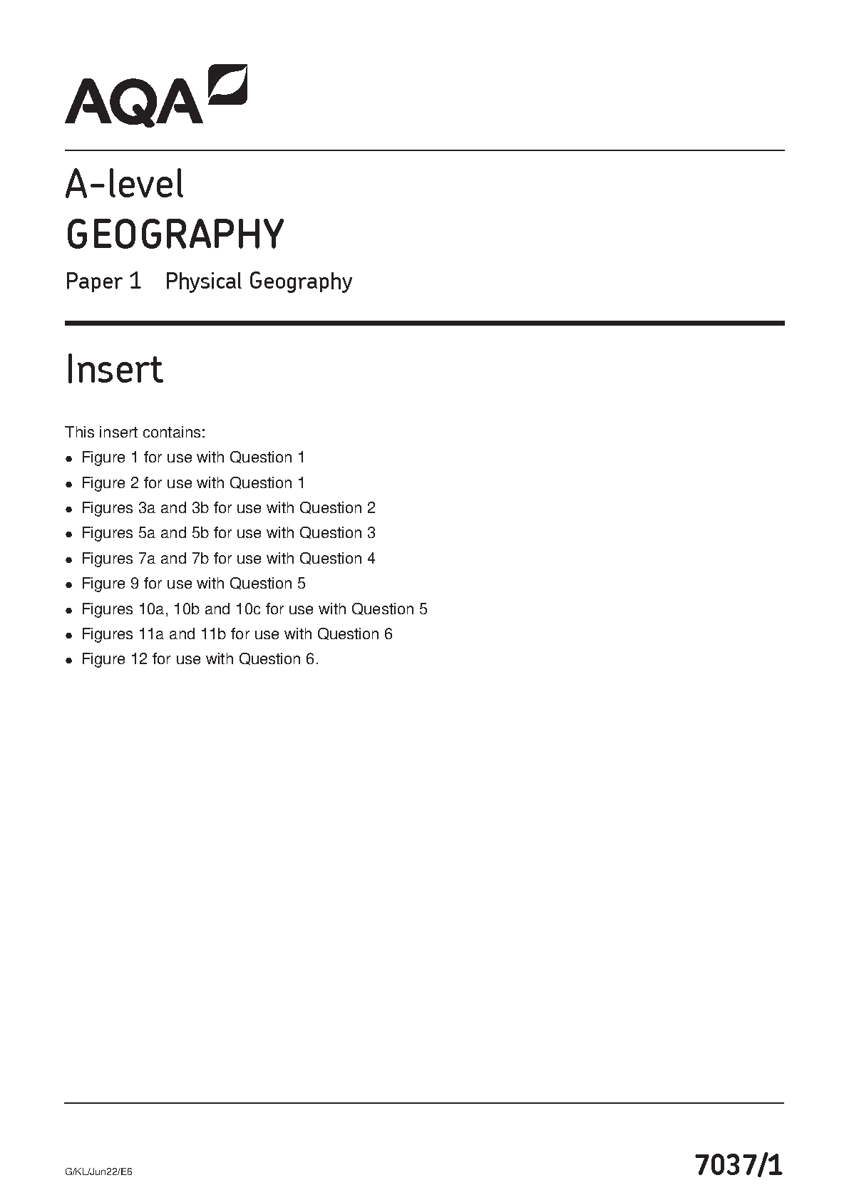 AQA A-Level Geography Paper 1 - Physical Geography Insert 2024/2025 Edition