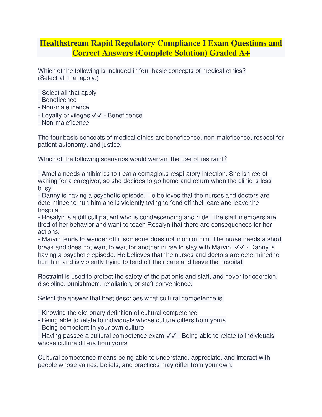 Healthstream Rapid Regulatory Compliance I Exam Questions and Correct Answers (Complete Solution) Graded A+