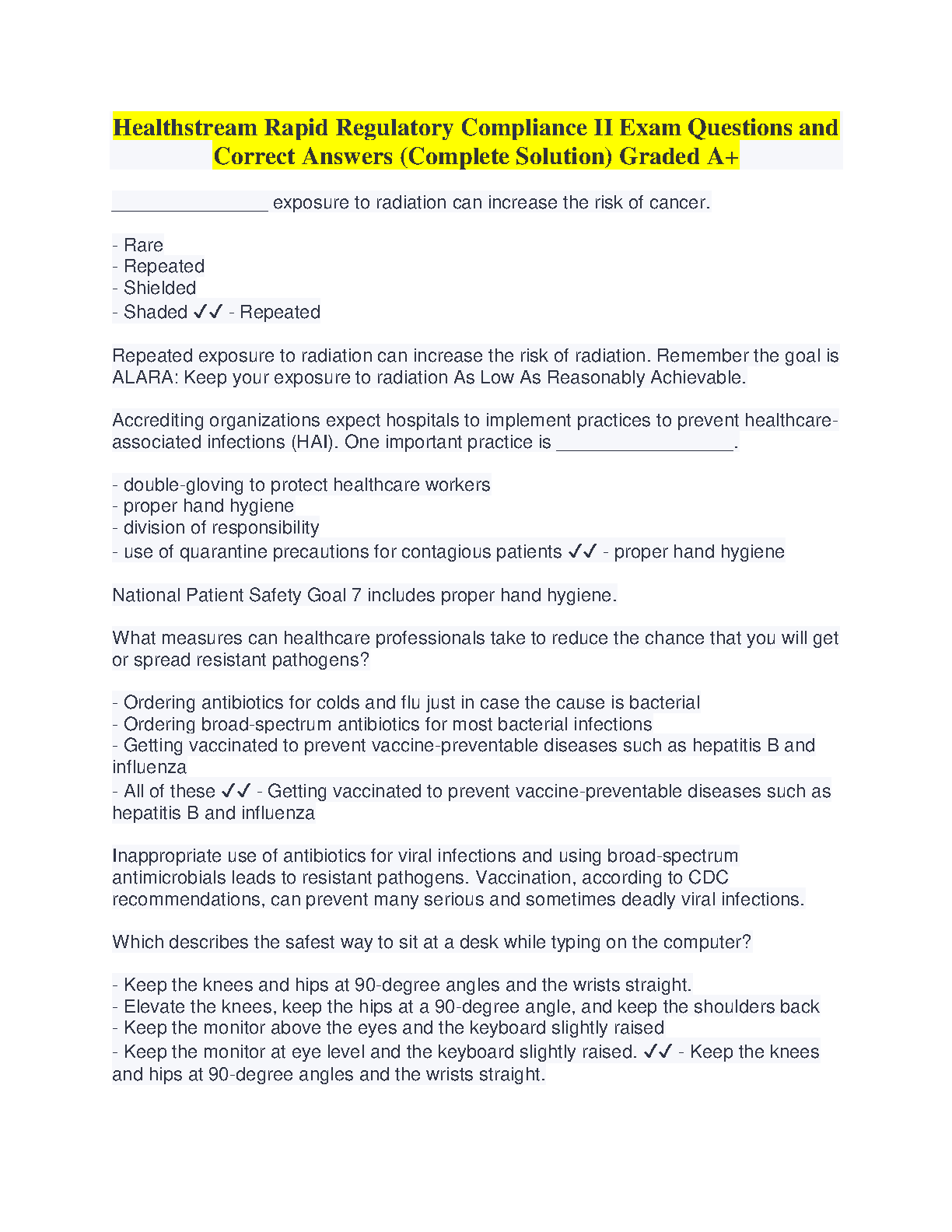 Healthstream Rapid Regulatory Compliance II Exam Questions and Correct Answers (Complete Solution) Graded A