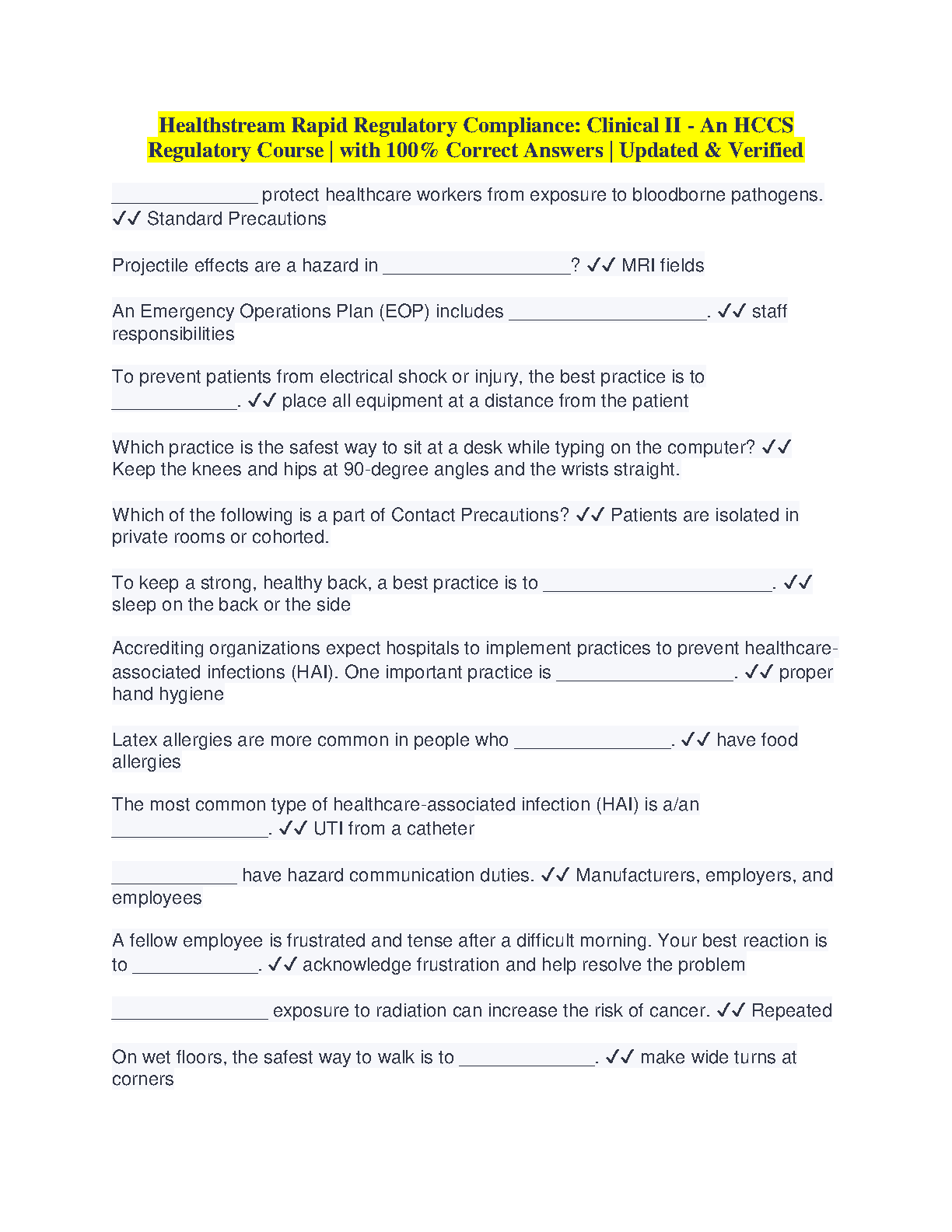 Healthstream Rapid Regulatory Compliance: Clinical II - An HCCS Regulatory Course | with 100% Correct Answers | Updated & Verified